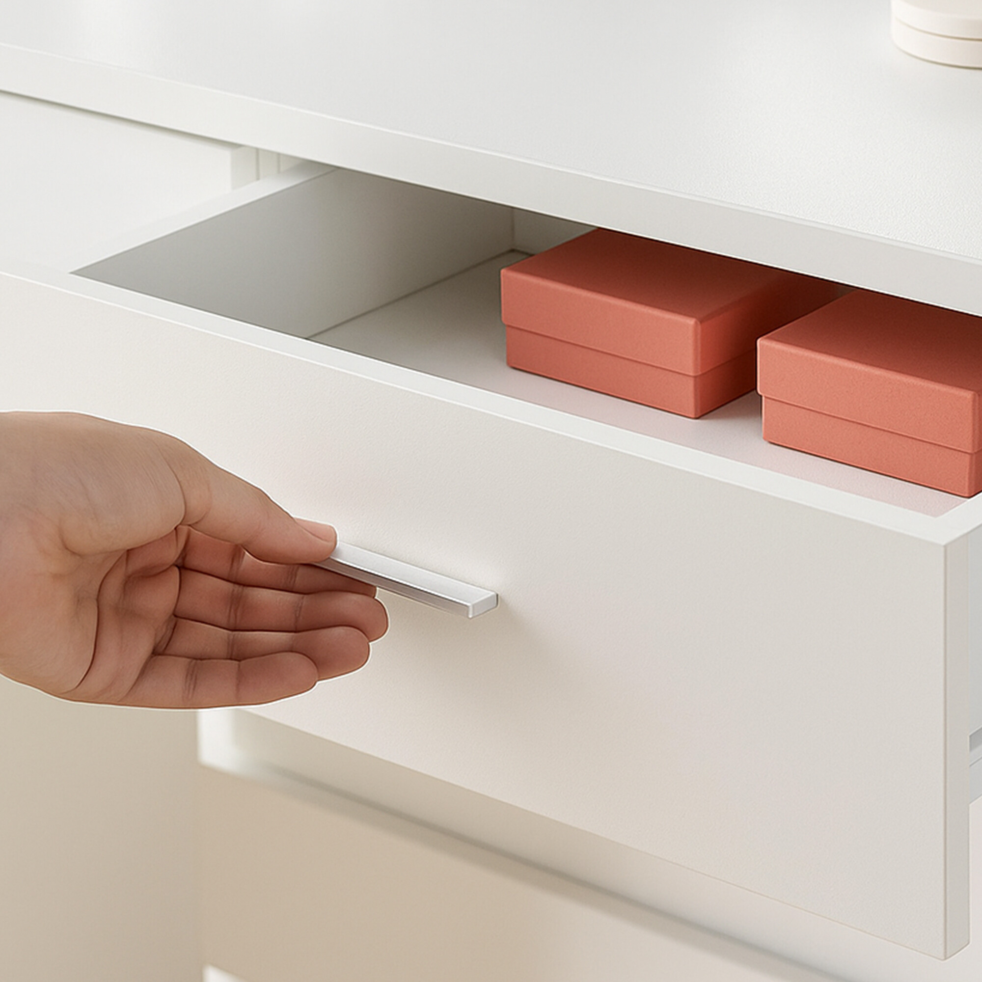 Určitě oceníte i 2 prostorné zásuvky, v kterých si pohodlně odložíte všechny svoje kosmetické pomůcky, šperky a ostatní doplňky.