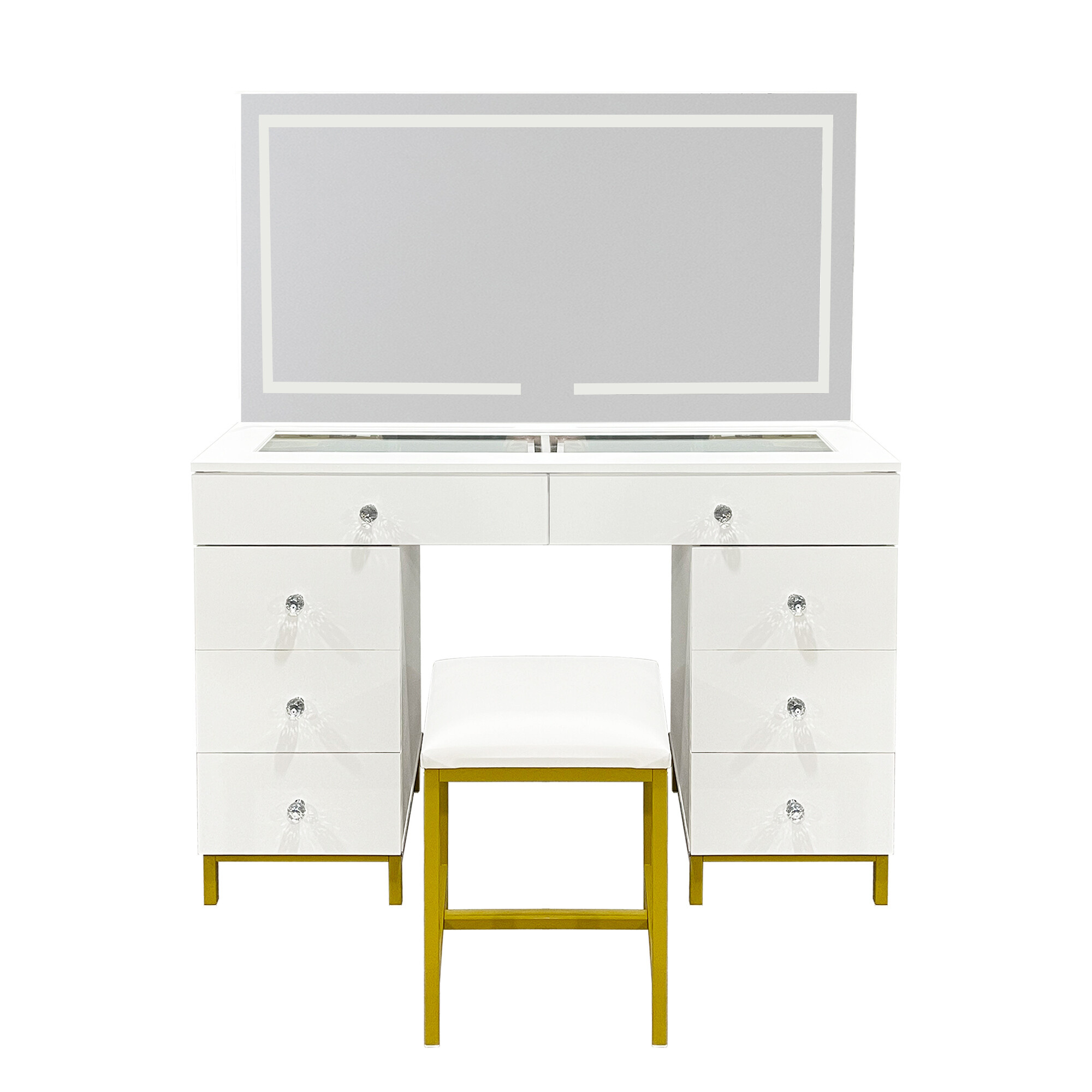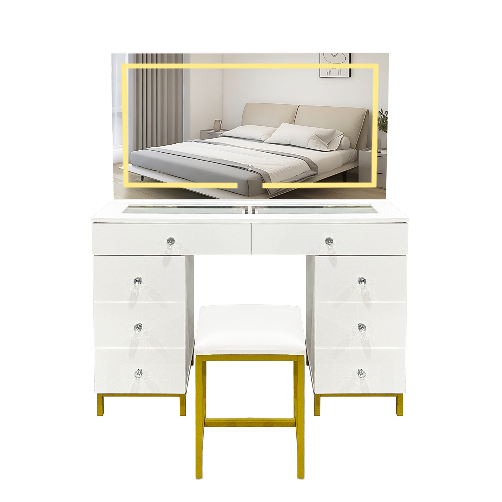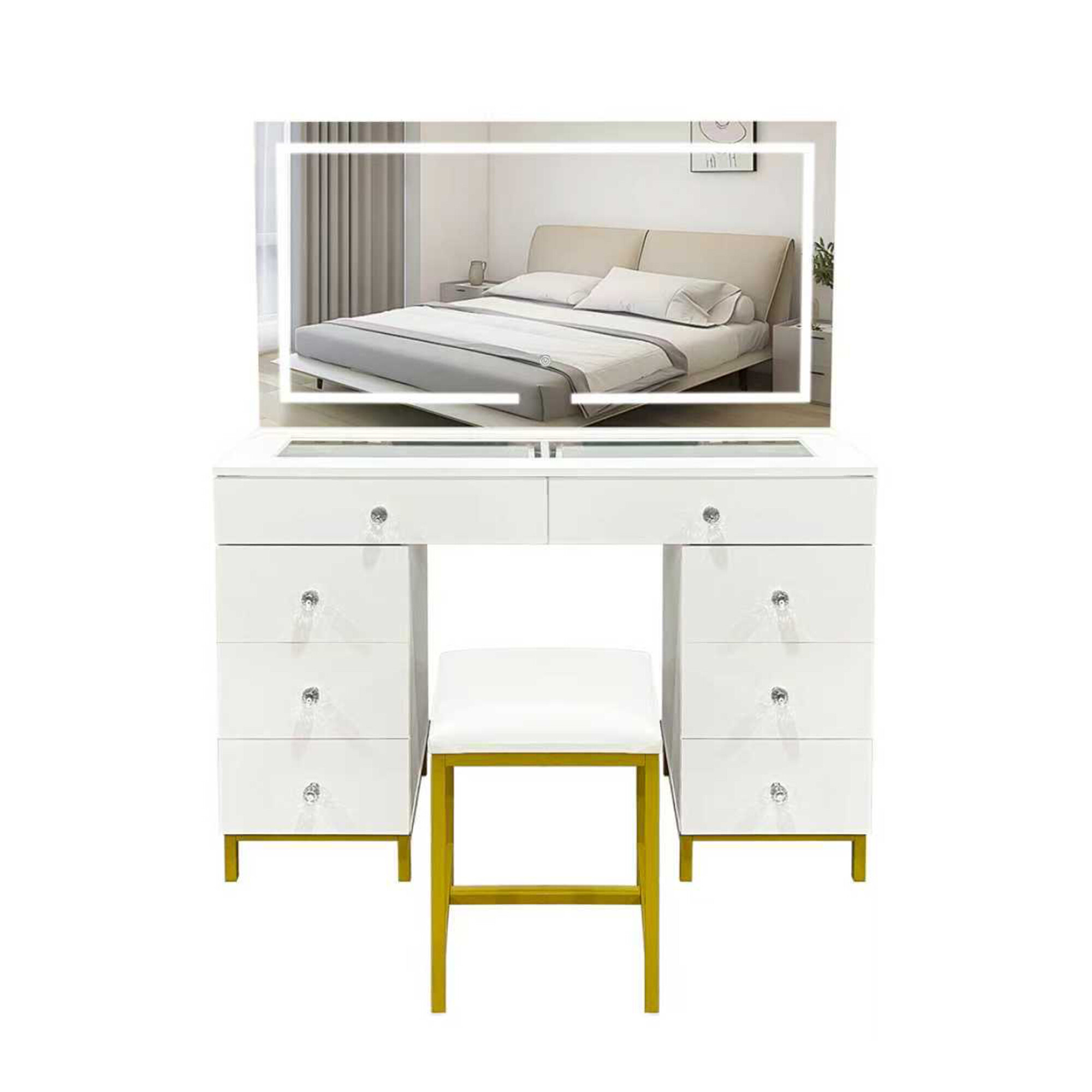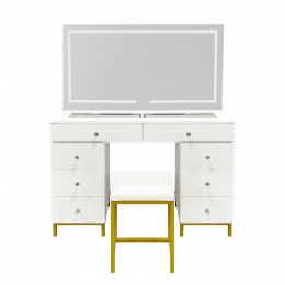 Dopřejte si každodenní dávku luxusu s tímto moderním toaletním stolkem se zrcadlem a LED osvětlením. Stylový bílý stolek v matném provedení se stane nejen praktickým, ale i estetickým doplňkem každé ložnice či šatny.