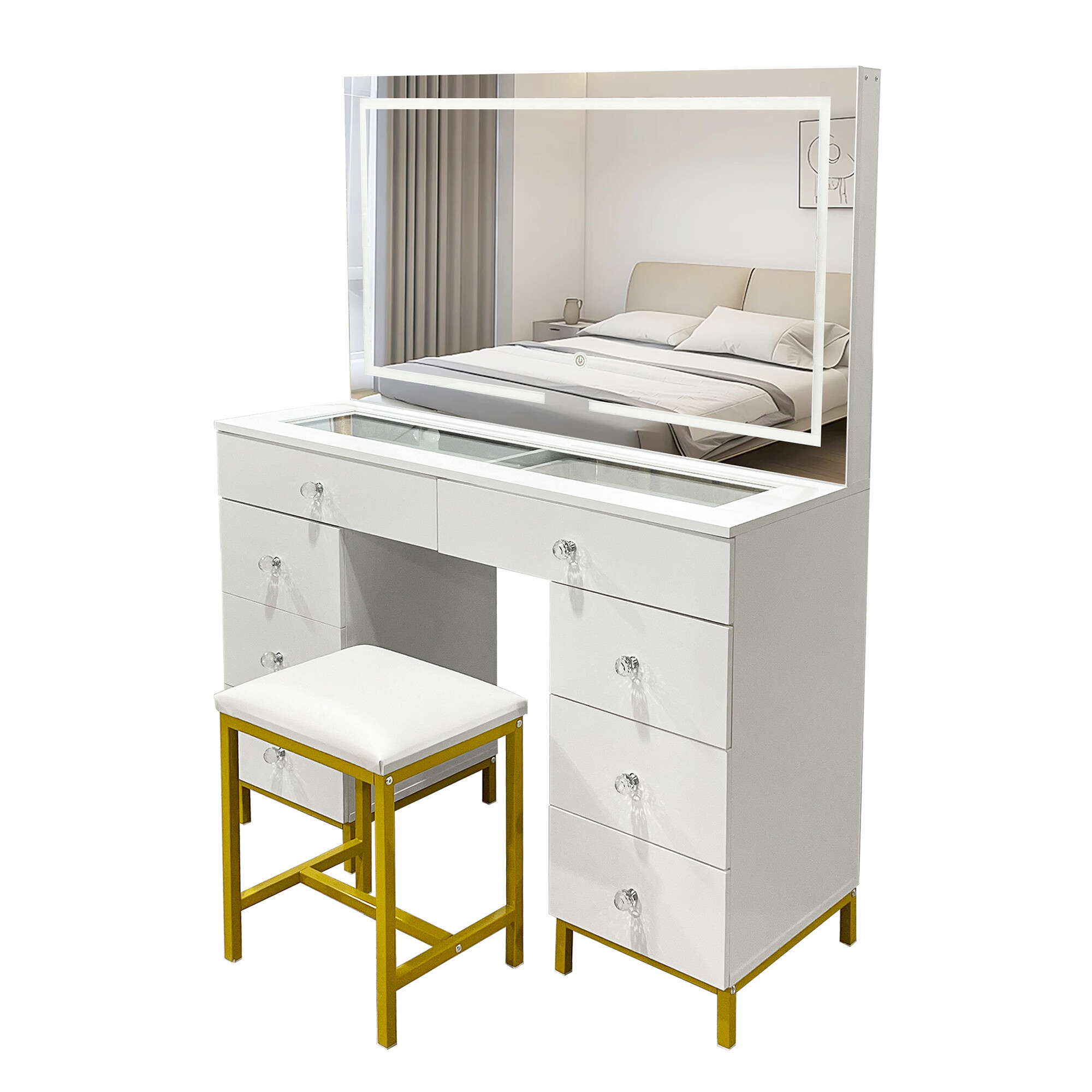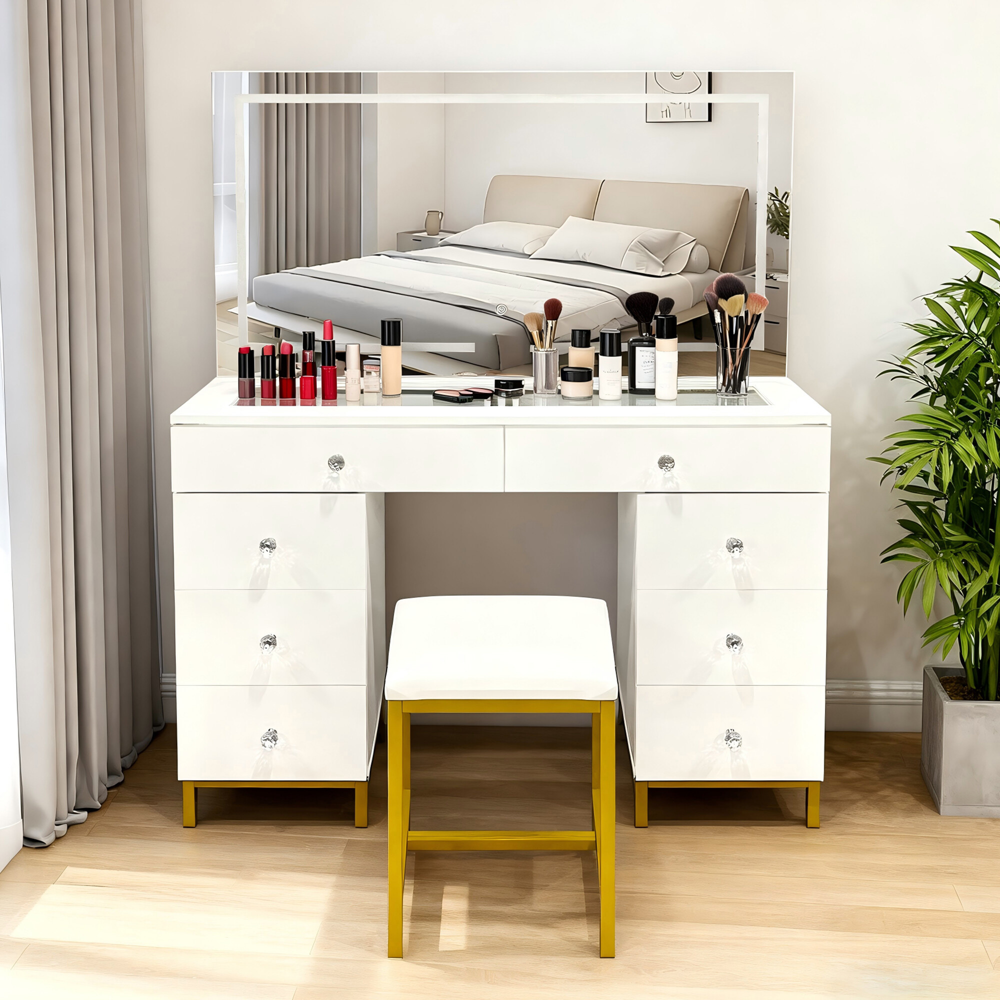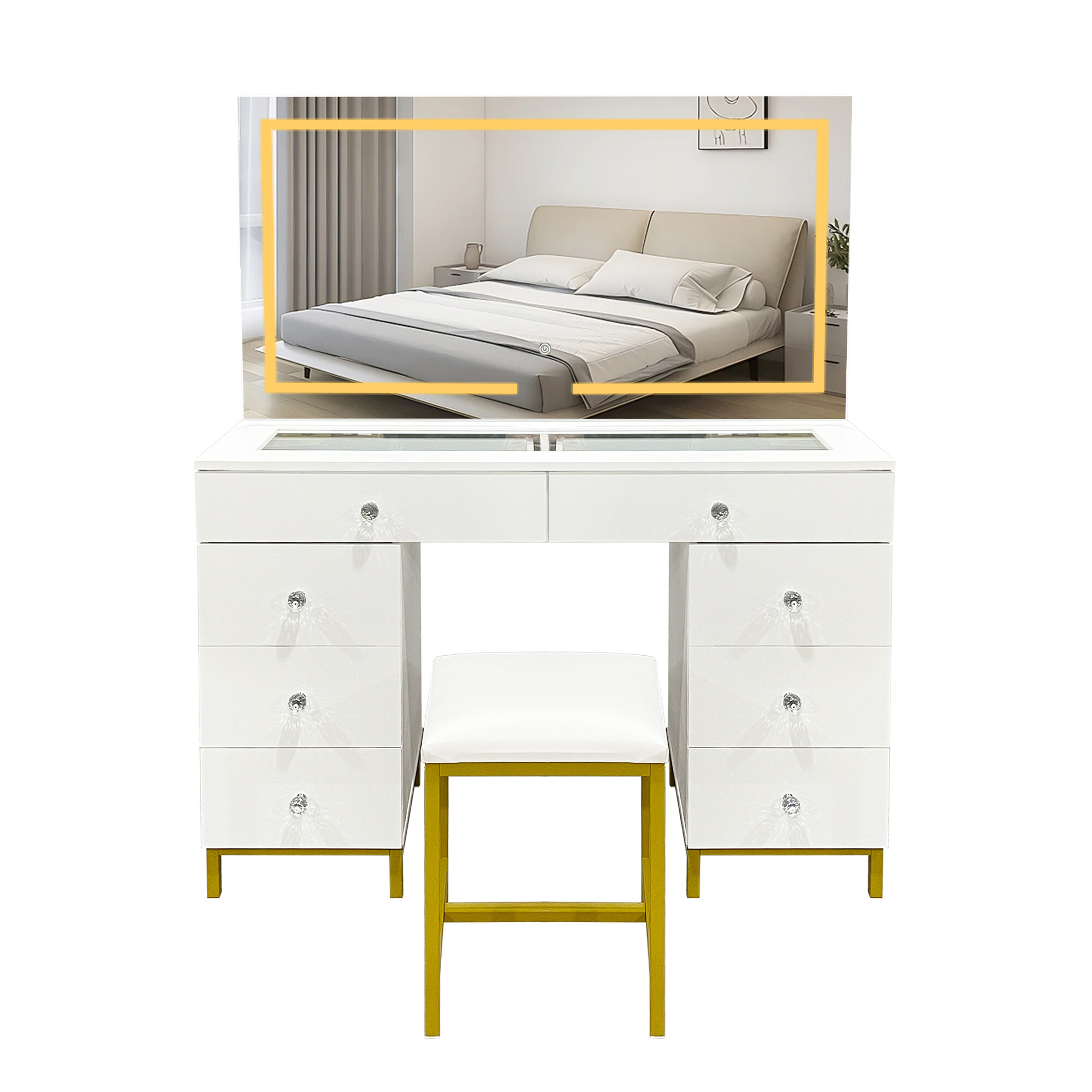 Dopřejte si každodenní dávku luxusu s tímto moderním toaletním stolkem se zrcadlem a LED osvětlením. Stylový bílý stolek v matném provedení se stane nejen praktickým, ale i estetickým doplňkem každé ložnice či šatny.