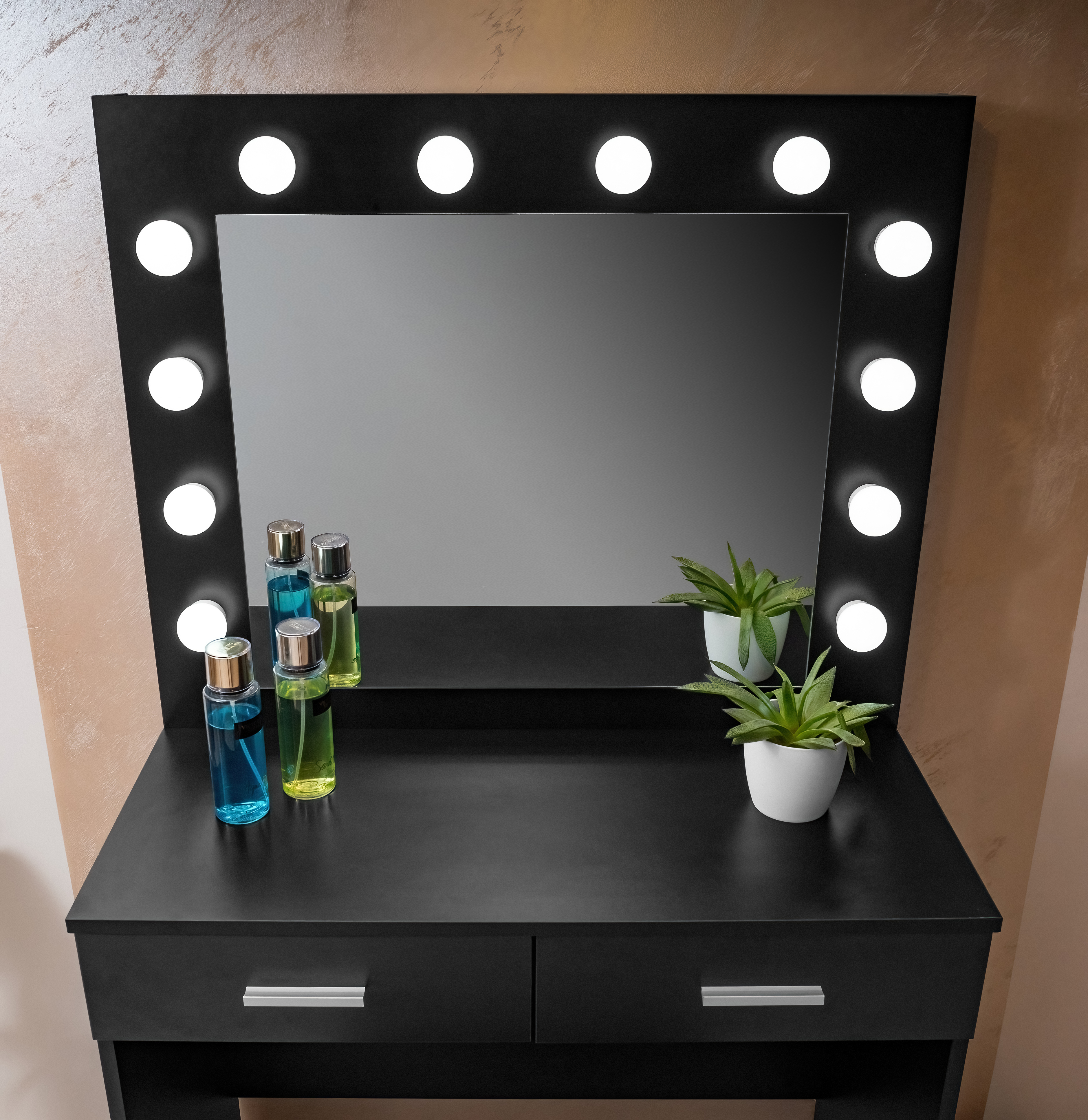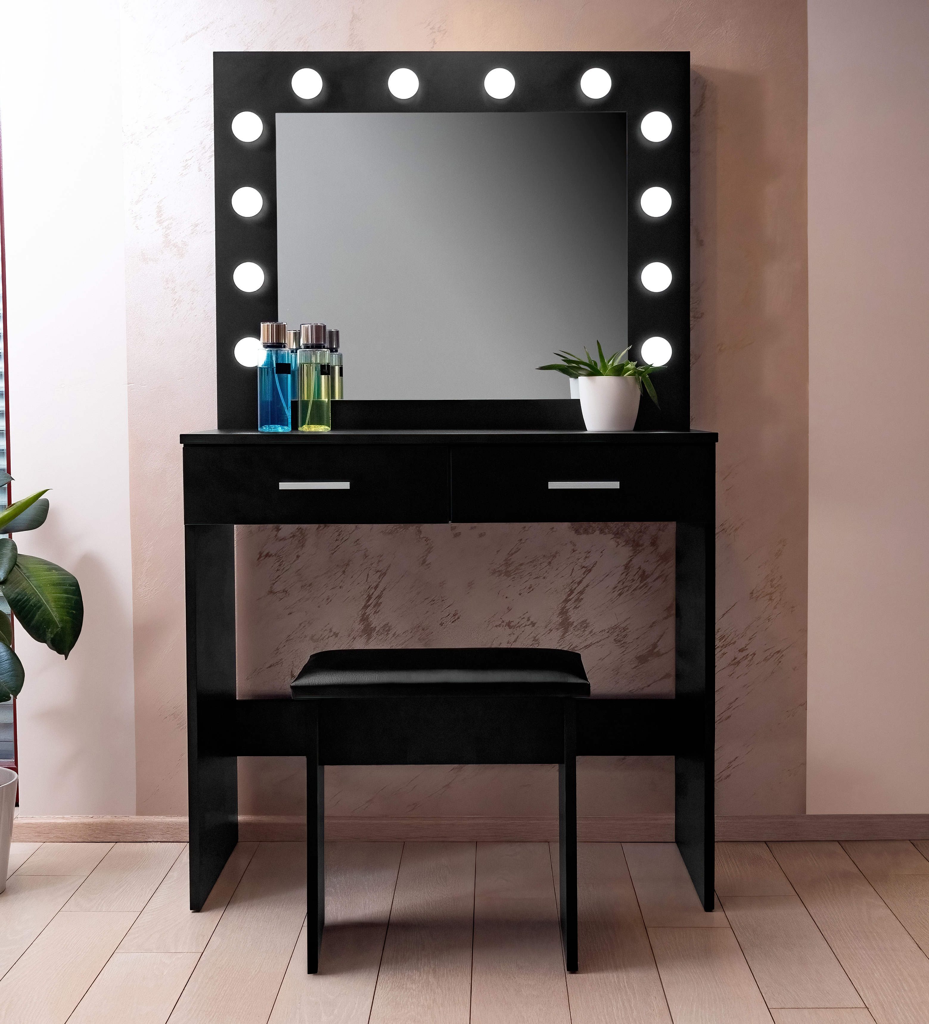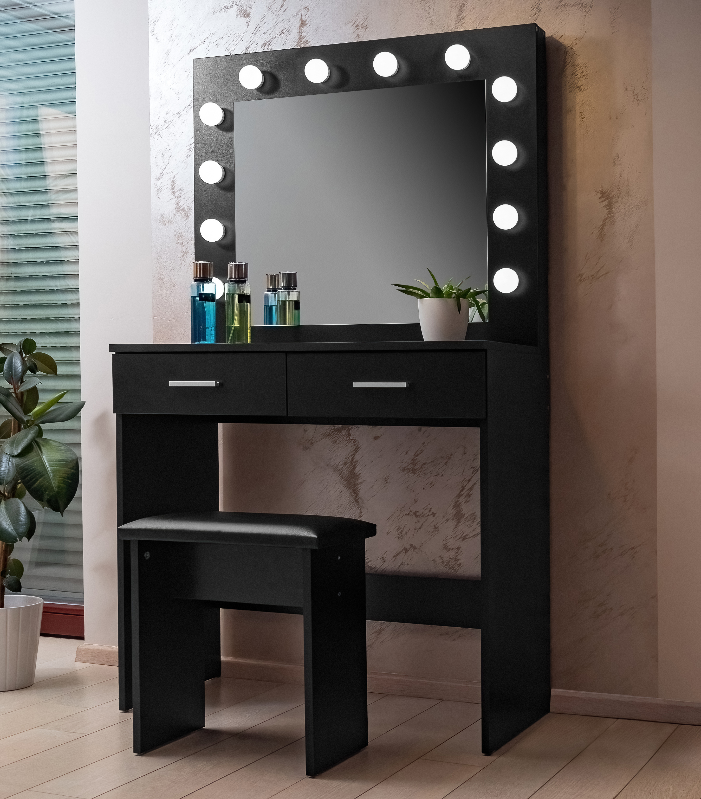 Aga Toaletní stolek se zrcadlem a osvětlením + taburet Matný Černý