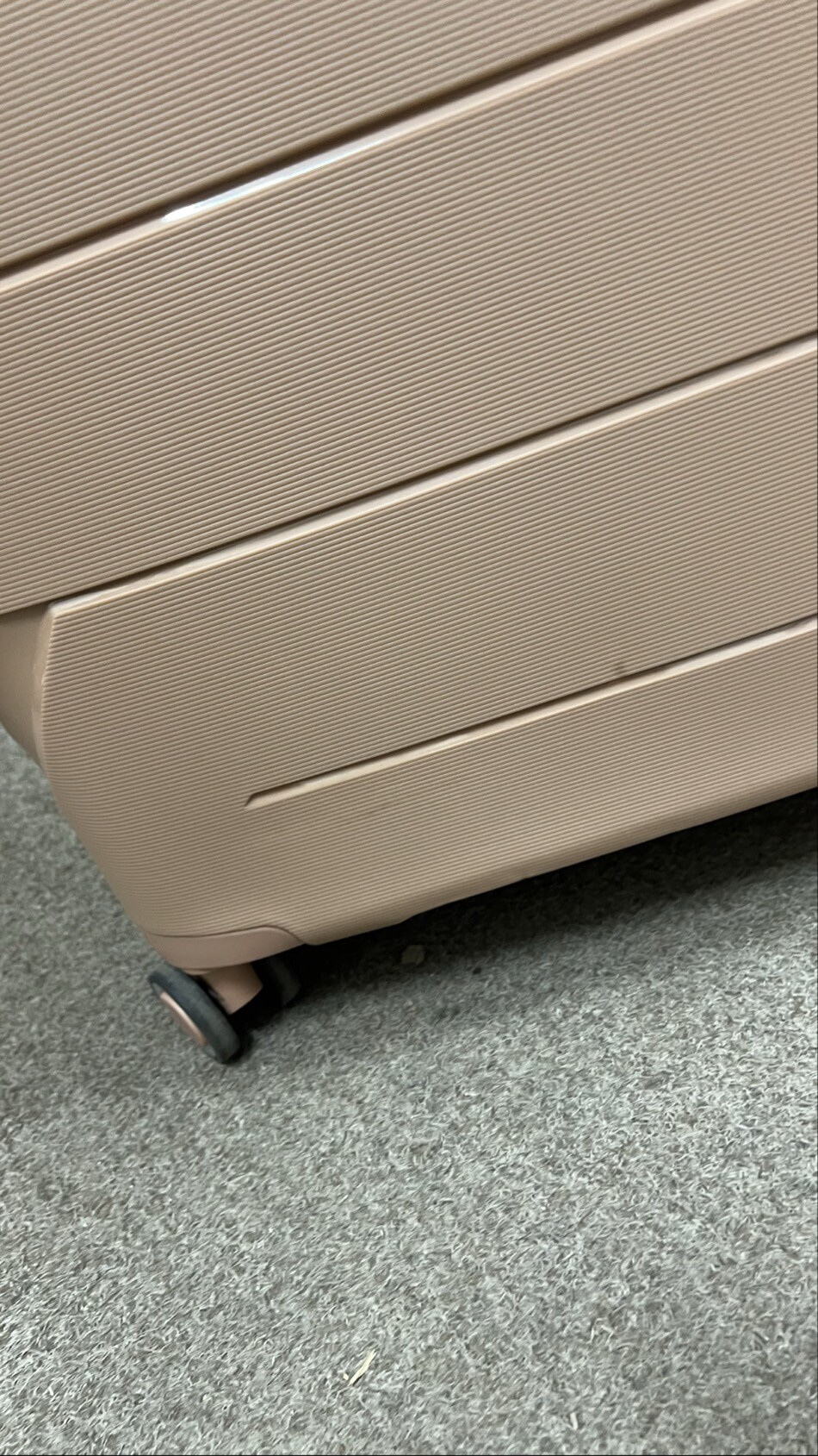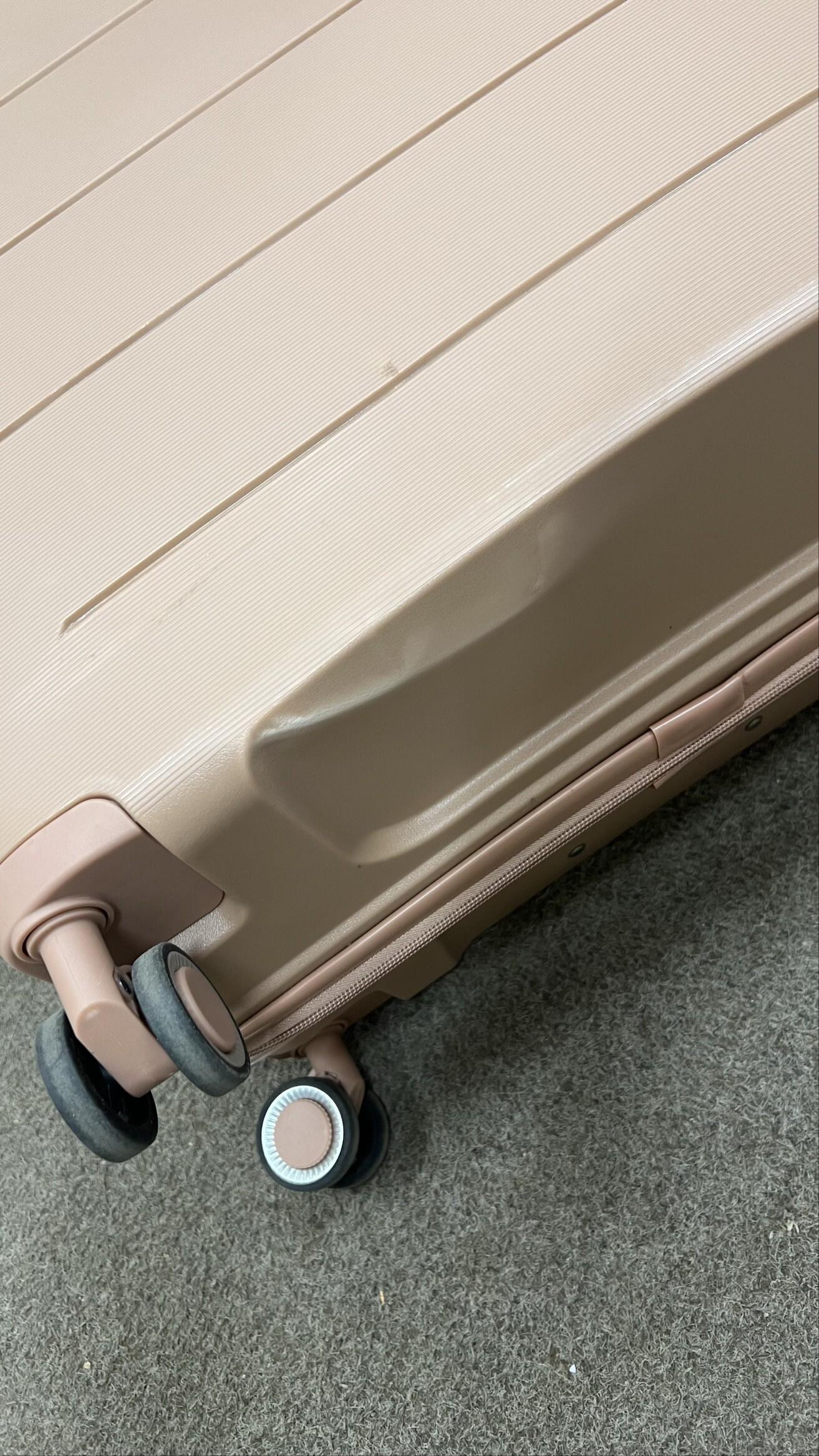 Vada je pouze estetická a nijak neovlivňuje funkčnost kufru ani jeho použitelnost při cestování.