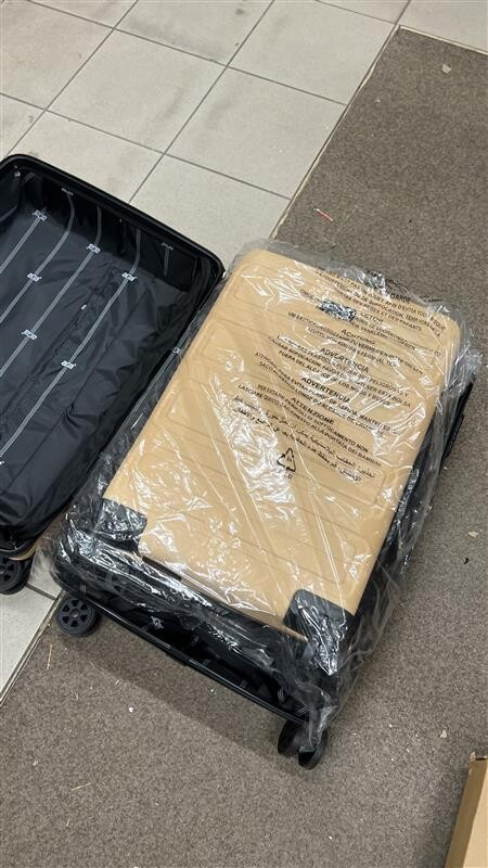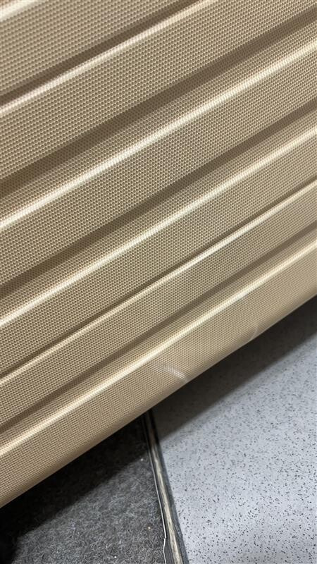 Menší kufr (S) je v pořádku, střední kufr (M) má pouze kosmetické poškození, které nemá vliv na jeho použití.