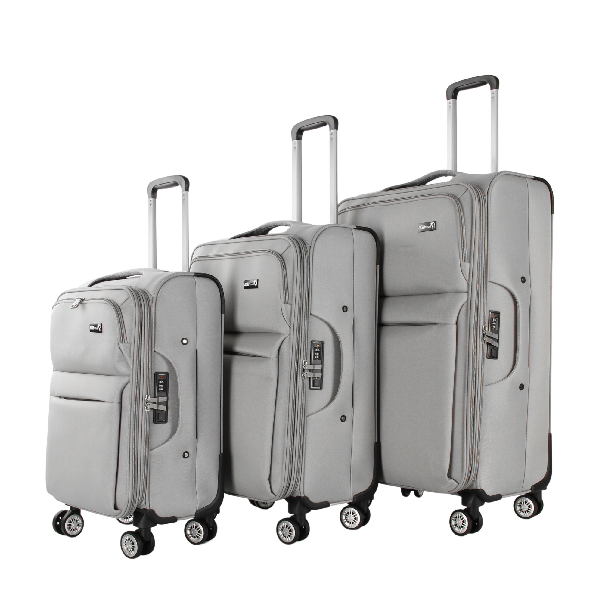 Každý kufr je vybaven 4 otočnými a zdvojenými kolečky, které umožňují snadnou a plynulou manipulaci ve všech směrech. Díky těmto kolečkům můžete kufry snadno přemisťovat i v úzkých prostorách, jako jsou letištní haly nebo hotelové chodby. Navíc, zdvojená kolečka zajišťují větší stabilitu a odolnost proti opotřebení.