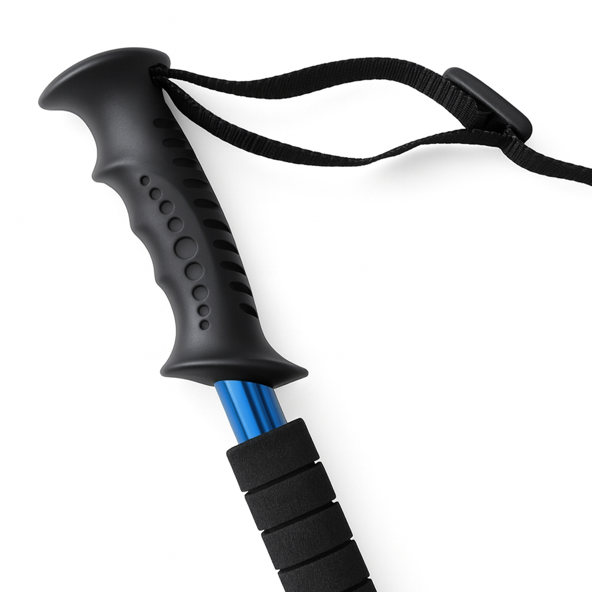 Ergonomická gumová rukojeť zajišťuje pohodlný a jistý úchop, zatímco nastavitelná poutka s rychloupínáním dodávají kontrolu a stabilitu při chůzi. Odolný karbidový (tungstenový) hrot přináší jistotu na kamenitých cestách a gumový návlek chrání hrot i povrch při používání na asfaltu nebo jiném tvrdém povrchu.
