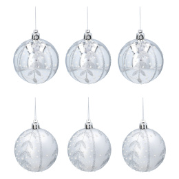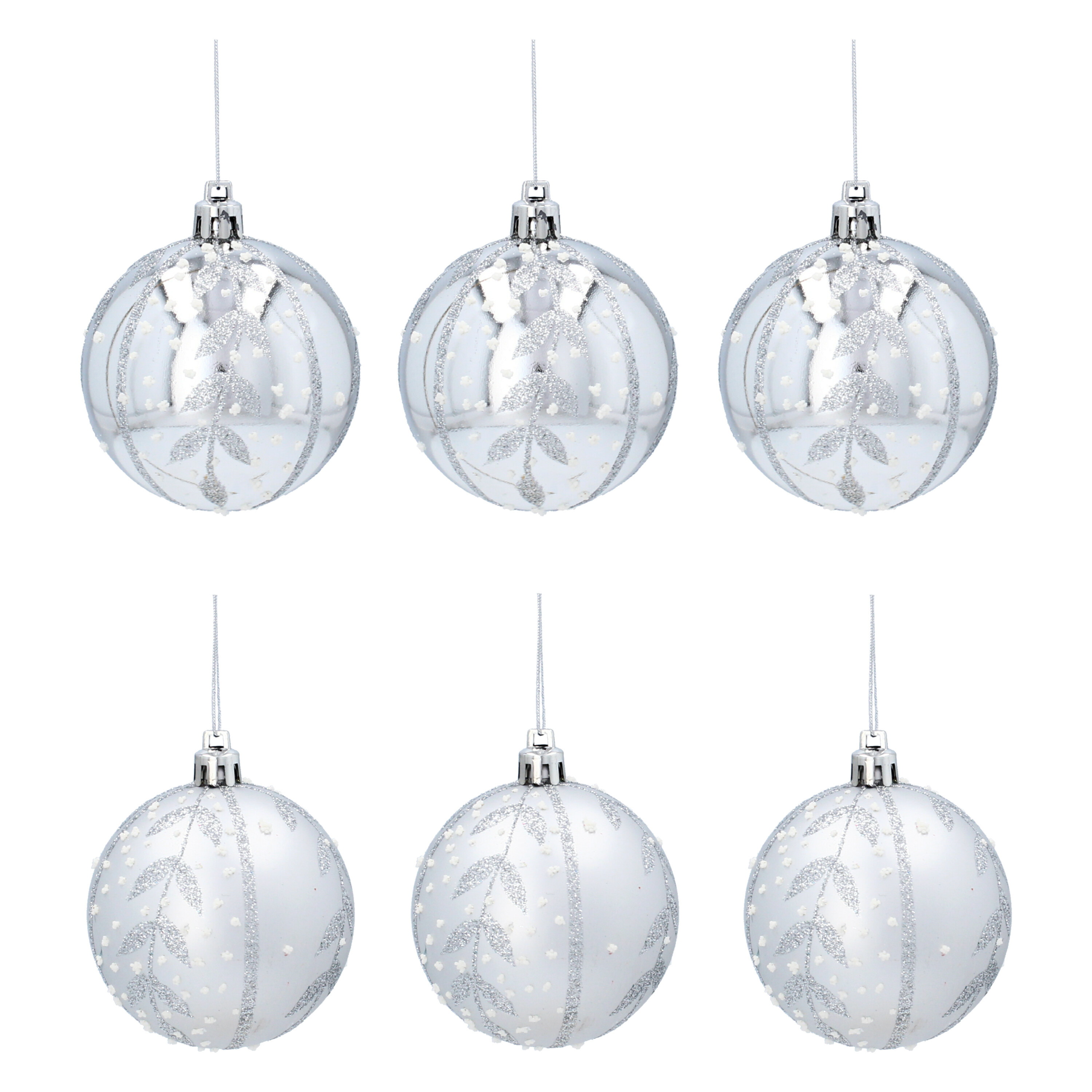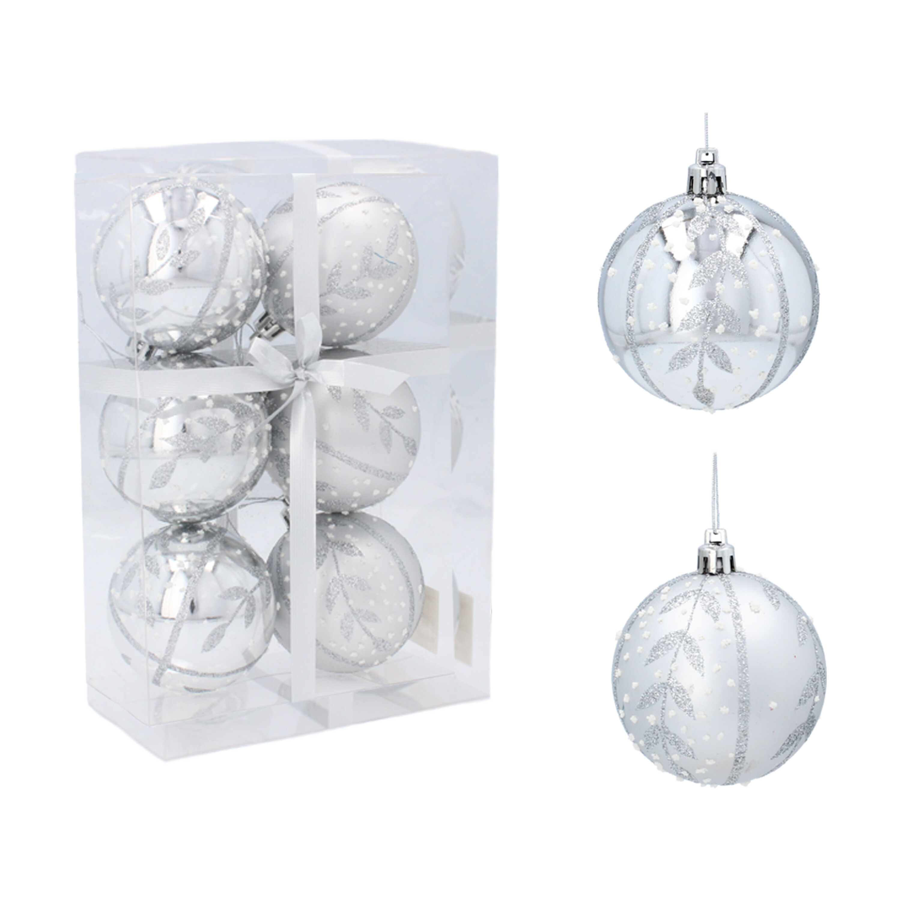 Aga Vánoční baňky 7cm 6ks Stříbrné - Lístečky