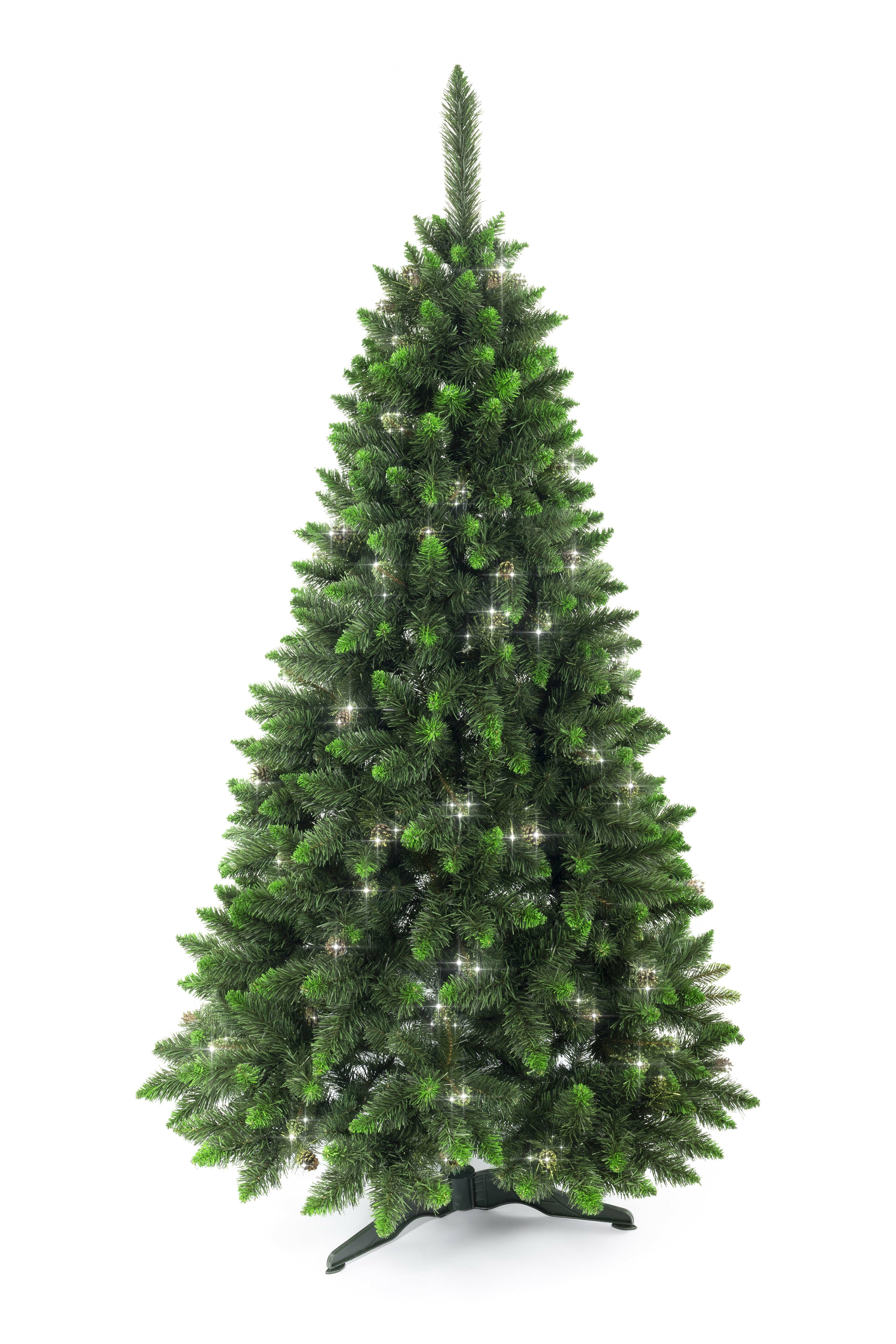 Luxusní umělý vánoční stromeček s celkovou výškou 150 cm v přírodním vzhledu krásné zelené husté borovice, která je ozdobena zelenými třpytkami.Celý popis