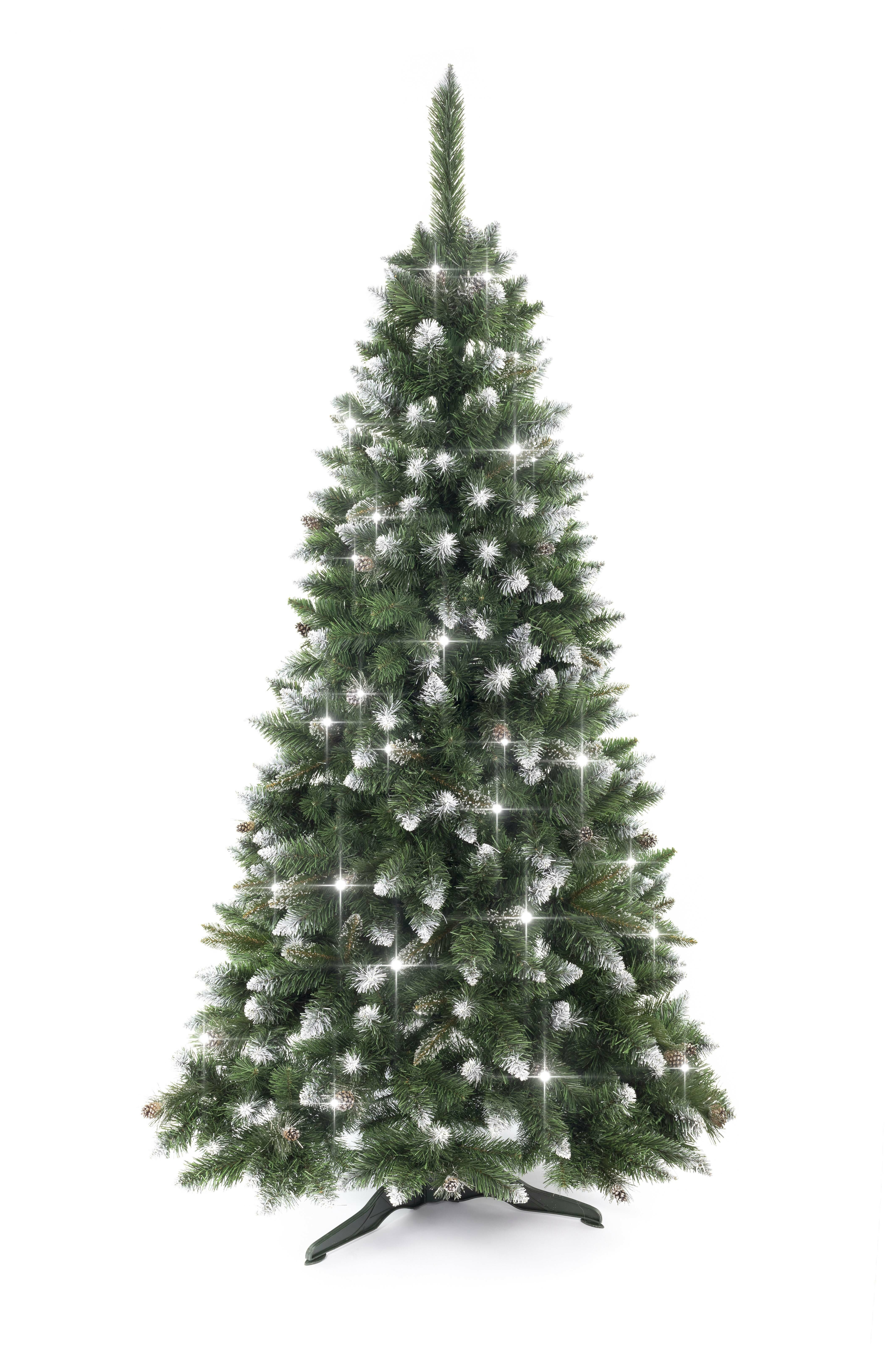 Luxusní umělý vánoční stromeček s celkovou výškou 180 cm v přírodním vzhledu krásné zelené husté borovice, který je ozdoben stříbrnými třpytkami.Celý popis