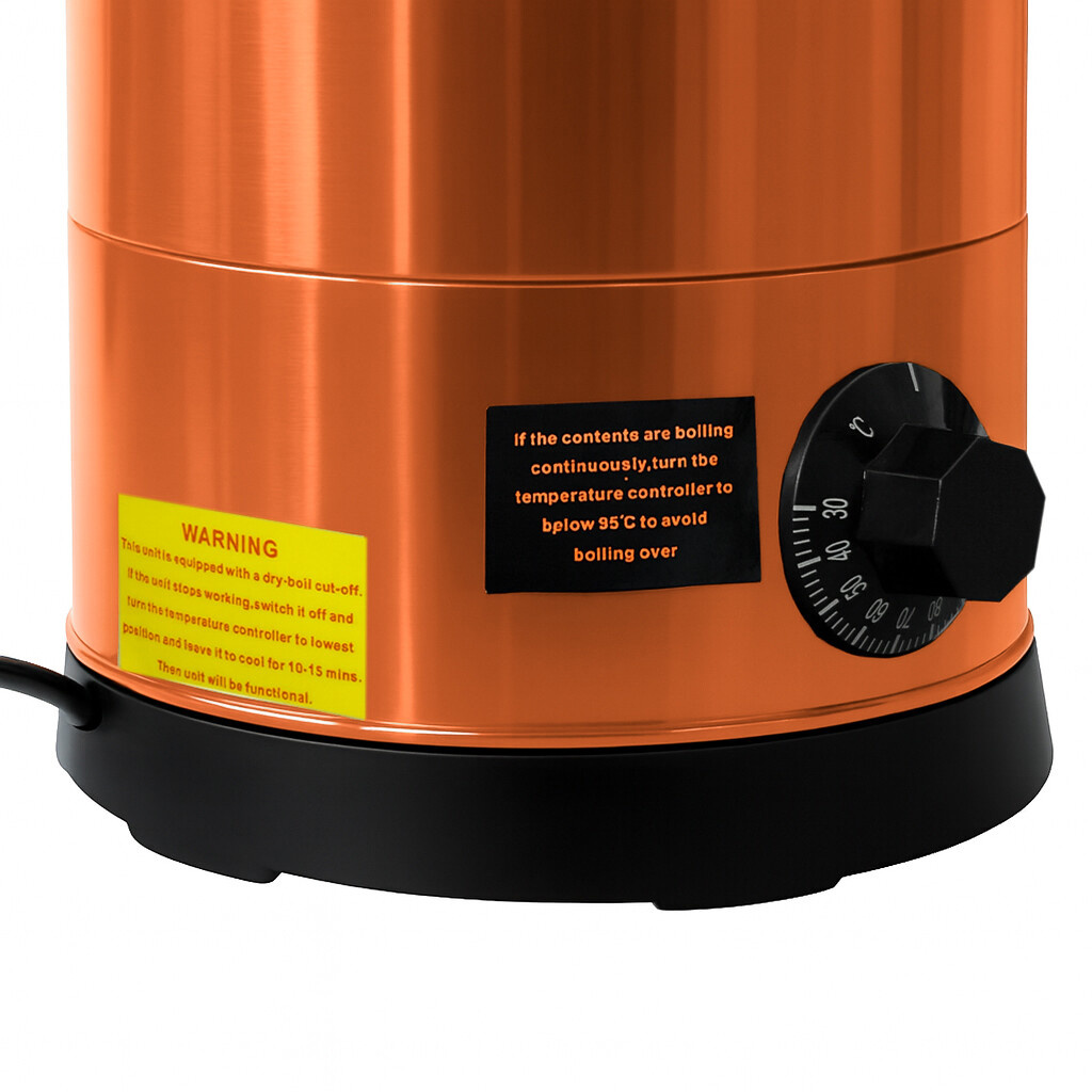 Nádoba i konstrukce jsou vyrobeny z nerezové oceli 304, která je hygienická, vysoce odolná a snadná na údržbu. Díky tomu se tento nerezový ohřívač teplých nápojů hodí pro intenzivní každodenní používání.