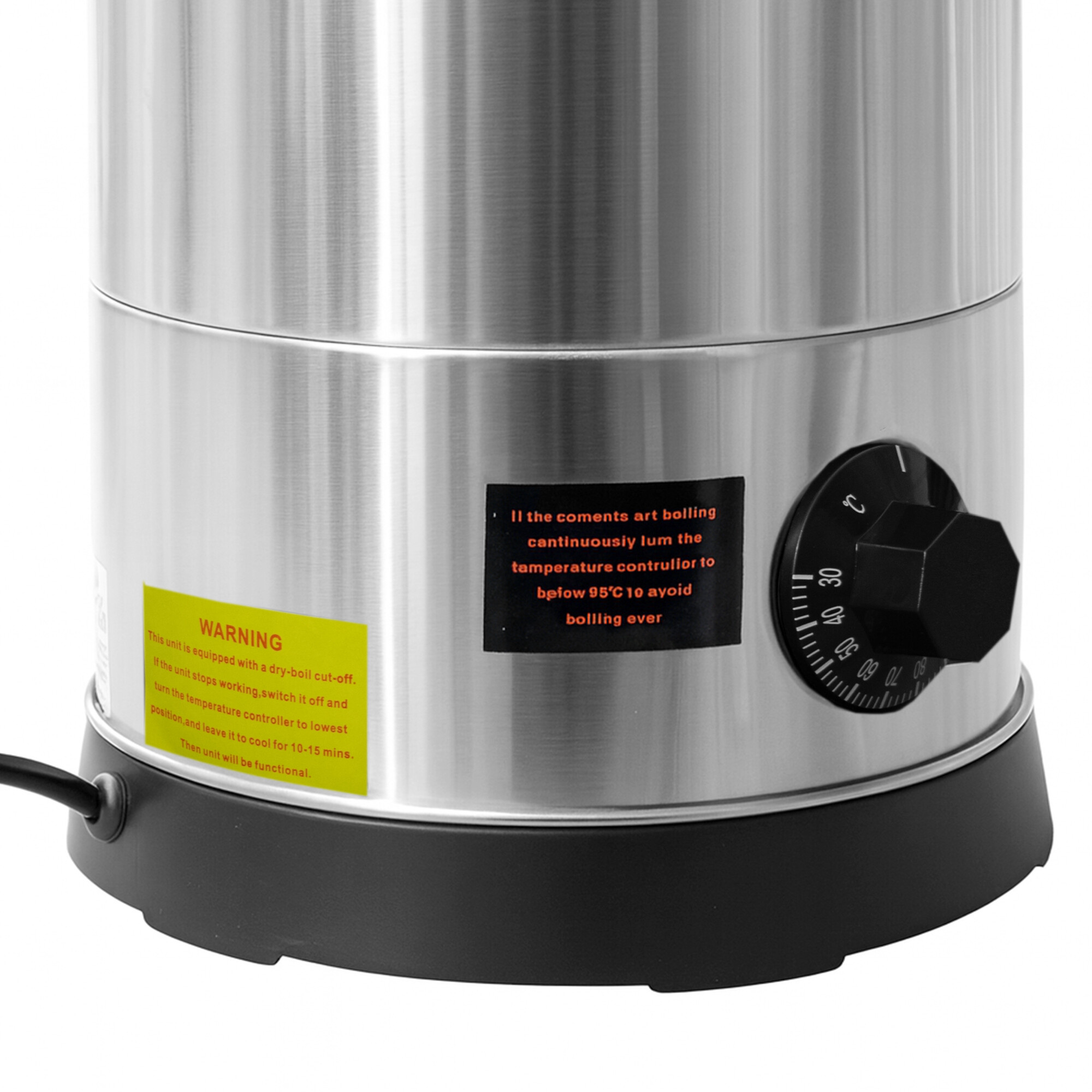 Nádoba i konstrukce jsou vyrobeny z nerezové oceli 304, která je hygienická, vysoce odolná a snadná na údržbu. Díky tomu se tento nerezový ohřívač teplých nápojů hodí pro intenzivní každodenní používání.