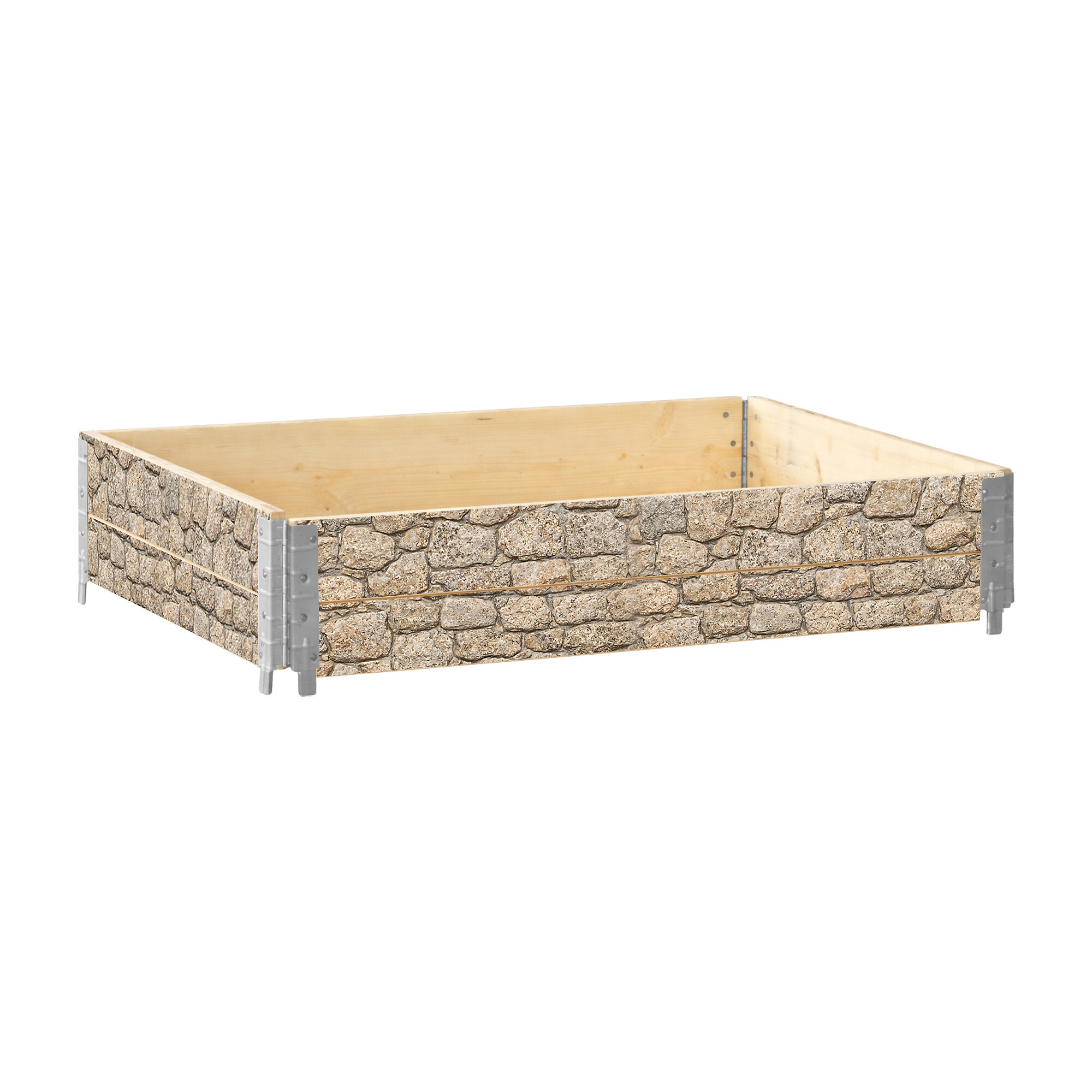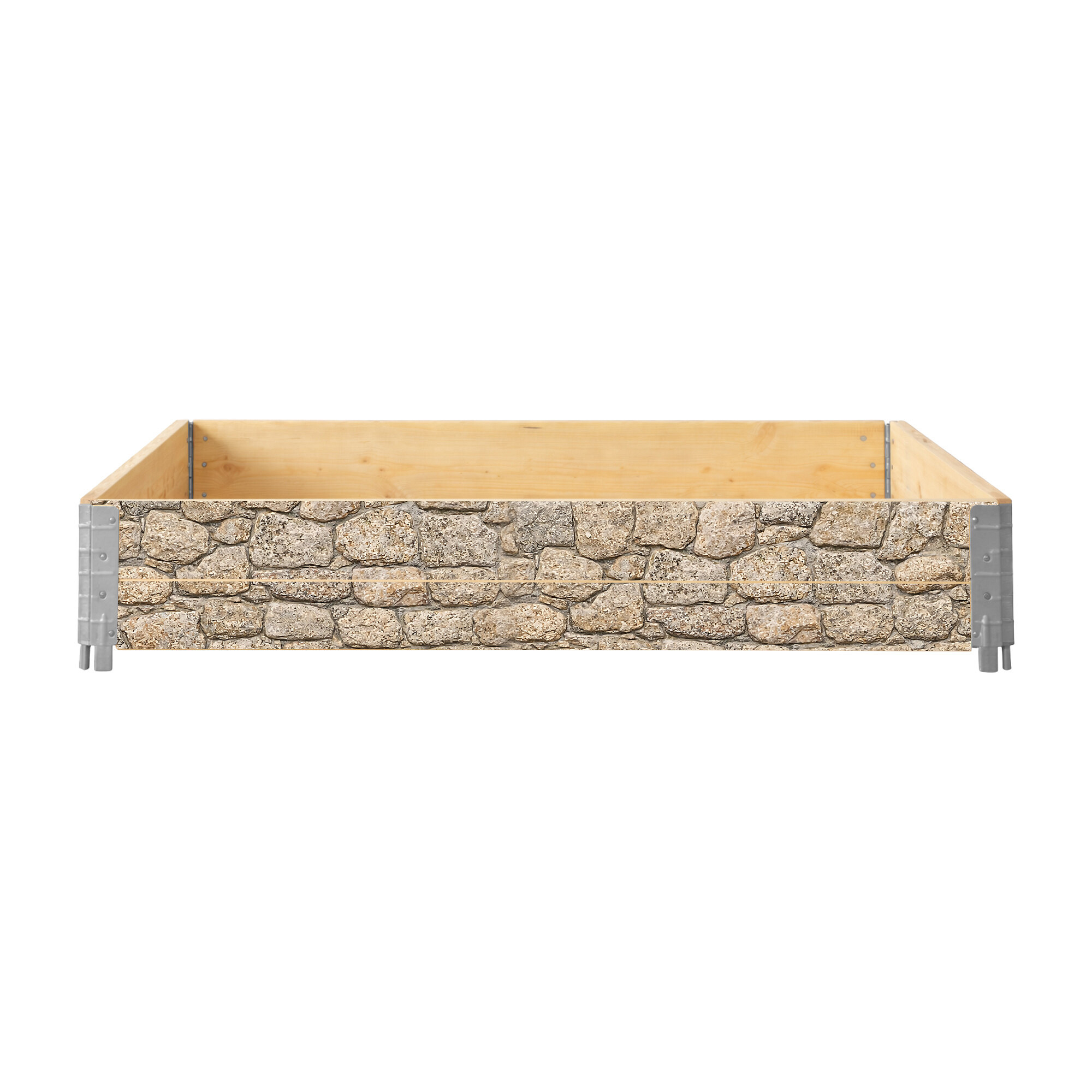 Záhon je vyroben z borovicového dřeva s certifikací IPPC. Vnější strana je doplněna grafikou kamene, která zvýrazňuje jeho zahradní vzhled a dobře se hodí do venkovního prostředí. Rozměr 120 × 80 cm nabízí dostatek prostoru pro domácí pěstování běžných druhů zeleniny, bylinek, jahod i květin. Výška 40 cm umožňuje vytvořit vrstvu zeminy vhodnou pro různé typy výsadby.
