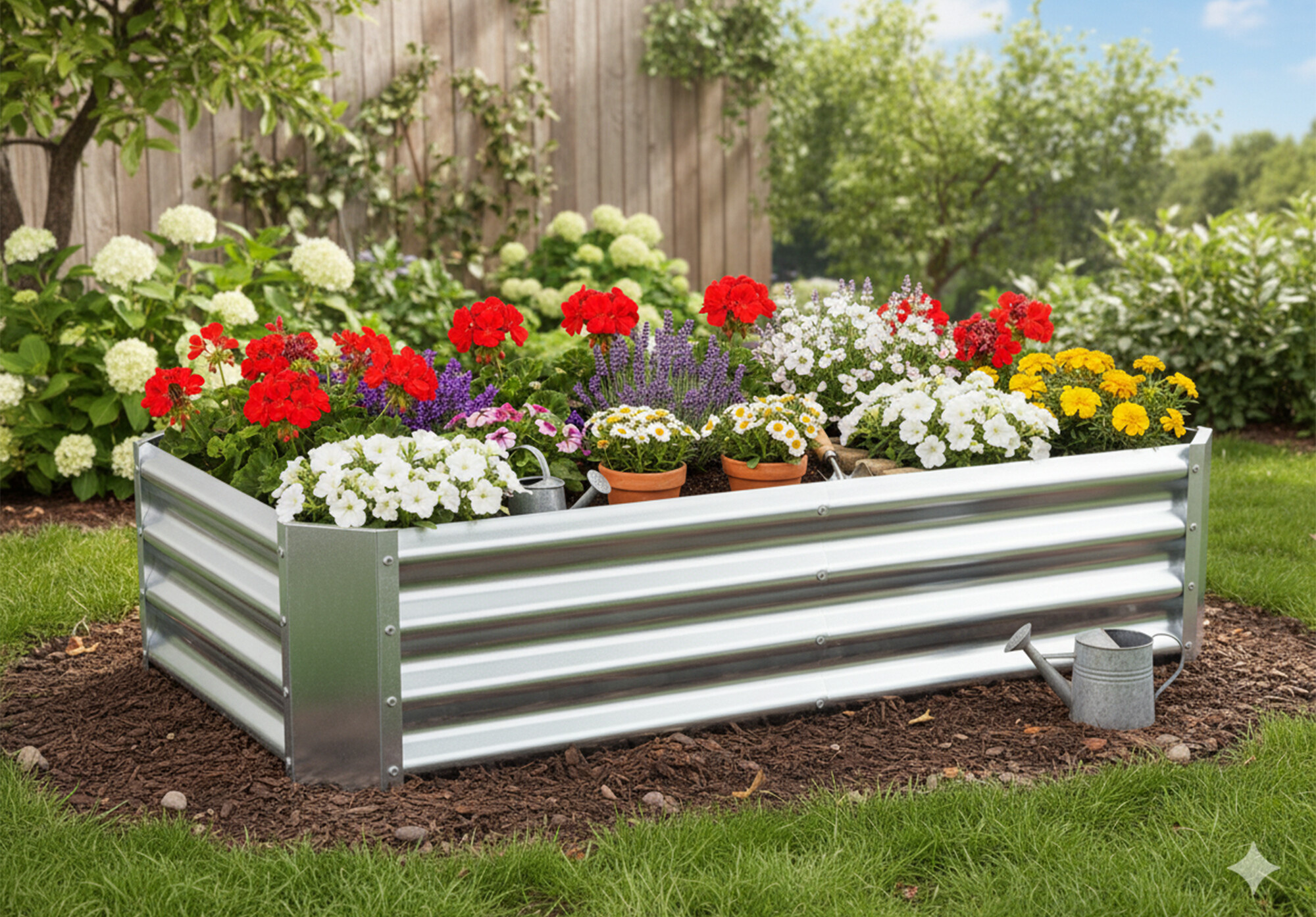 Záhon je zhotovený z odolné pozinkované oceli, výborně tudíž odolává počasí a je vhodný pro venkovní použití.