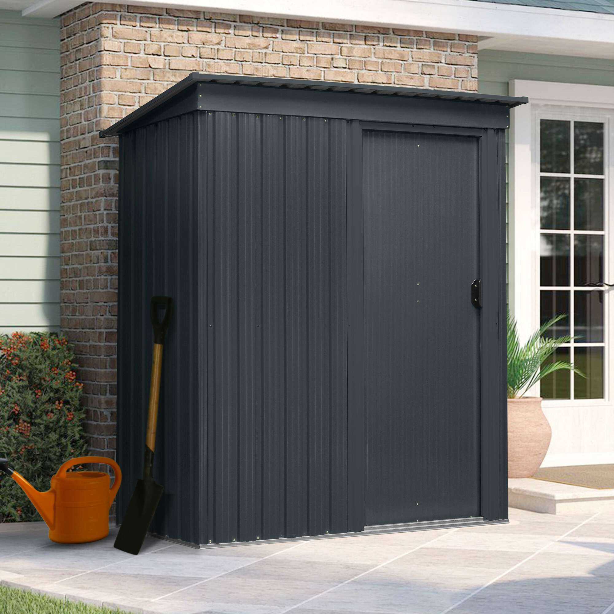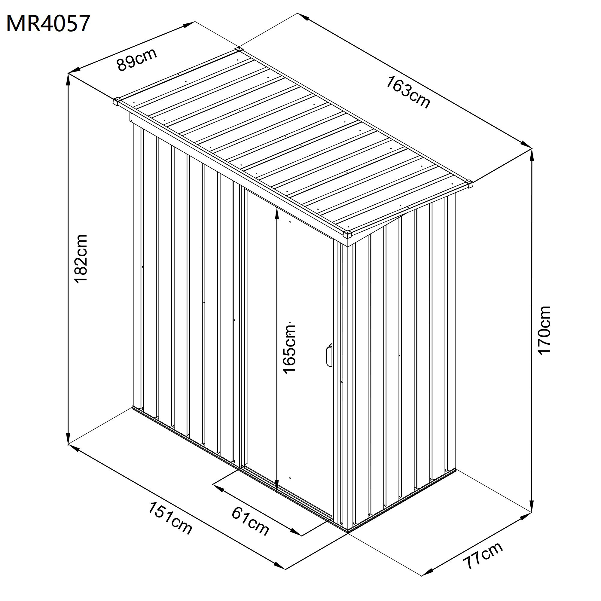 Zahradní domek má posuvné dveře o šířce 61 cm a výšce 165 cm. Součástí jsou i dveřní úchyty, díky kterým lze domek uzamknout běžným visacím zámkem.