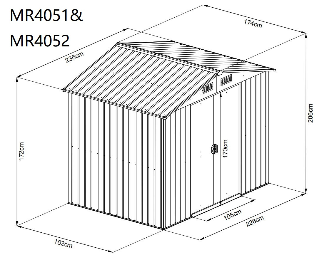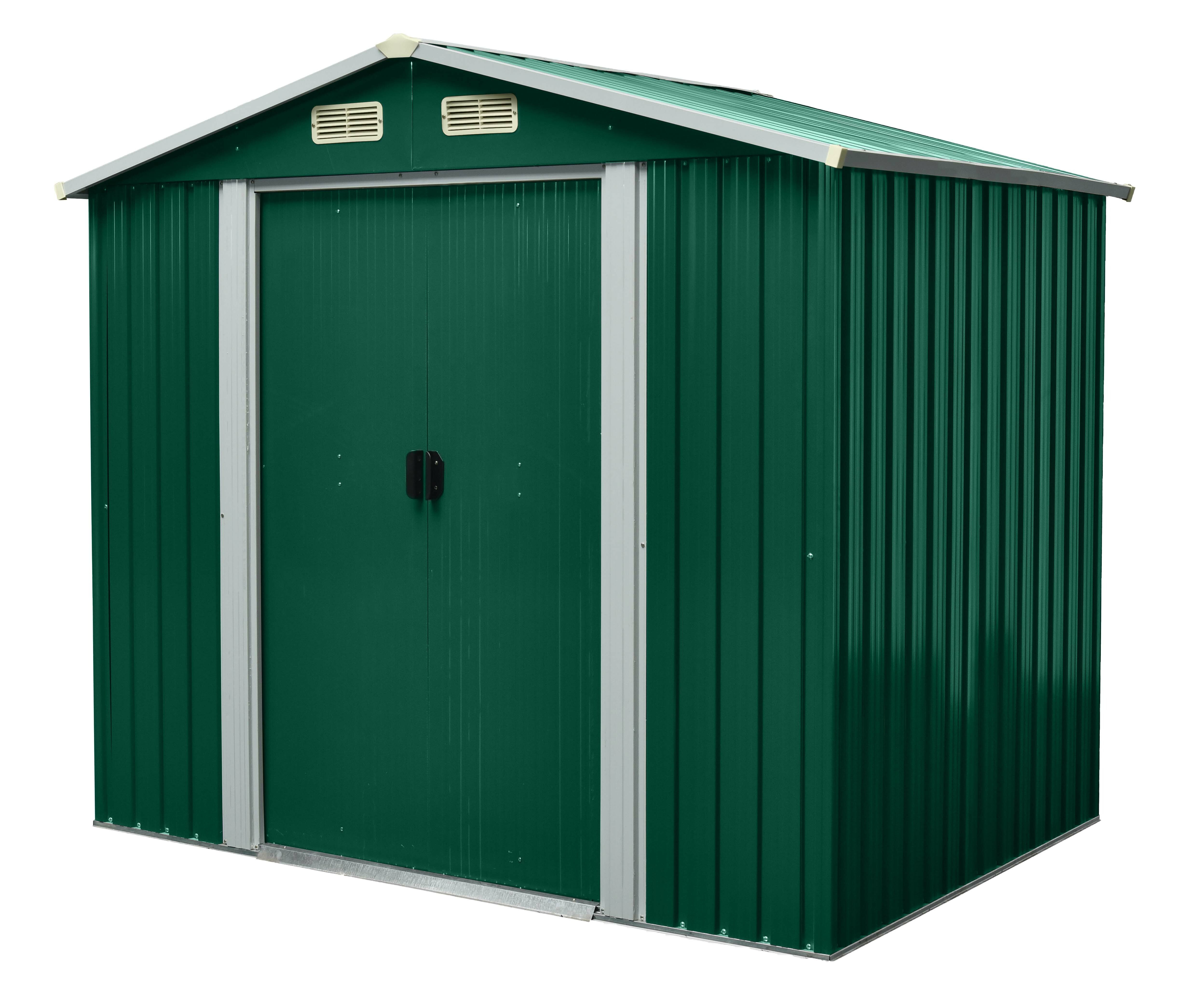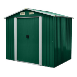 Stěny zahradního domku jsou vyrobeny z kvalitního profilovaného ocelového plechu tloušťky 0,25 mm s barevným nástřikem a konstrukce z galvanizovaného plechu o síle 0,60 mm.