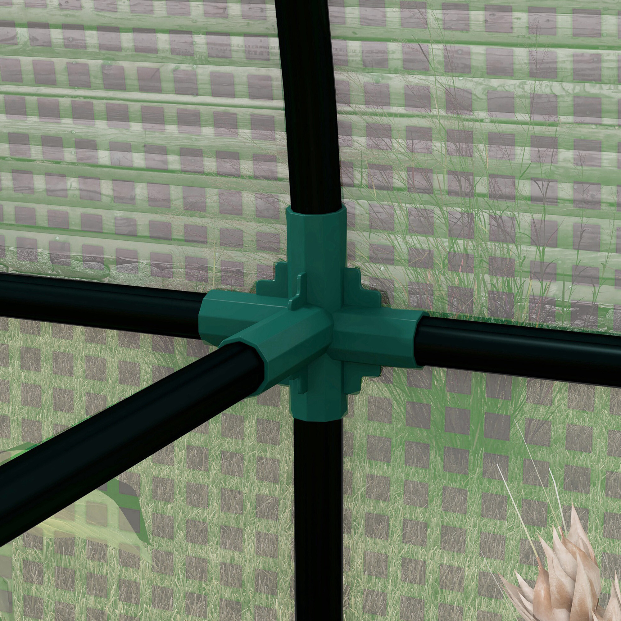 Transparentní vrstva PE fólie dodává pozoruhodné vlastnosti termoregulace a maximální propustnosti světla. Zelená sítka mesh z PP zapuštěná ve struktuře fólie ji zesiluje a chrání proti protržení a mechanickému poškození.