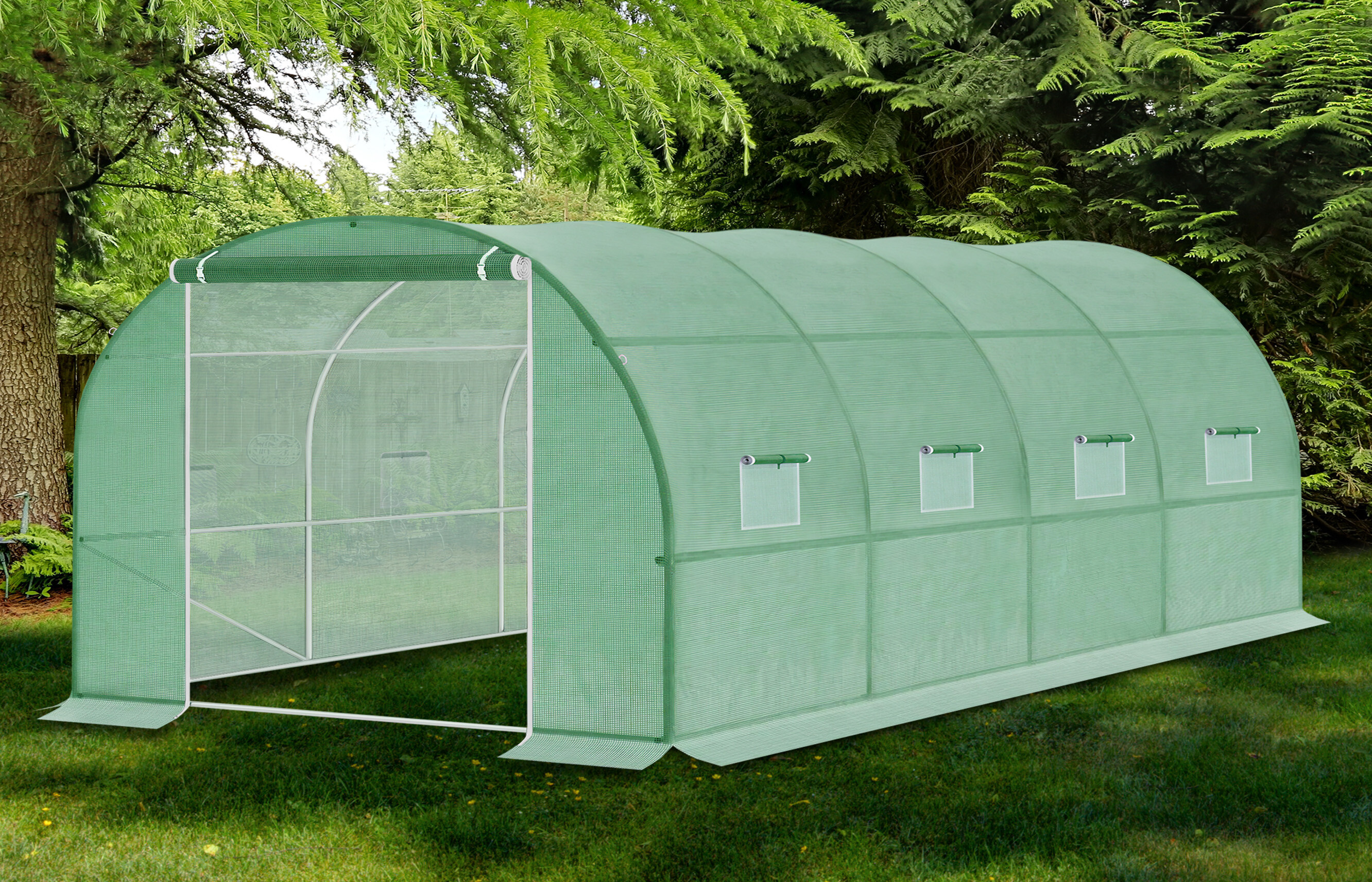Optimální výška 200 cm umožňuje volně se pohybovat a vykonávat práci ve fóliovníku.