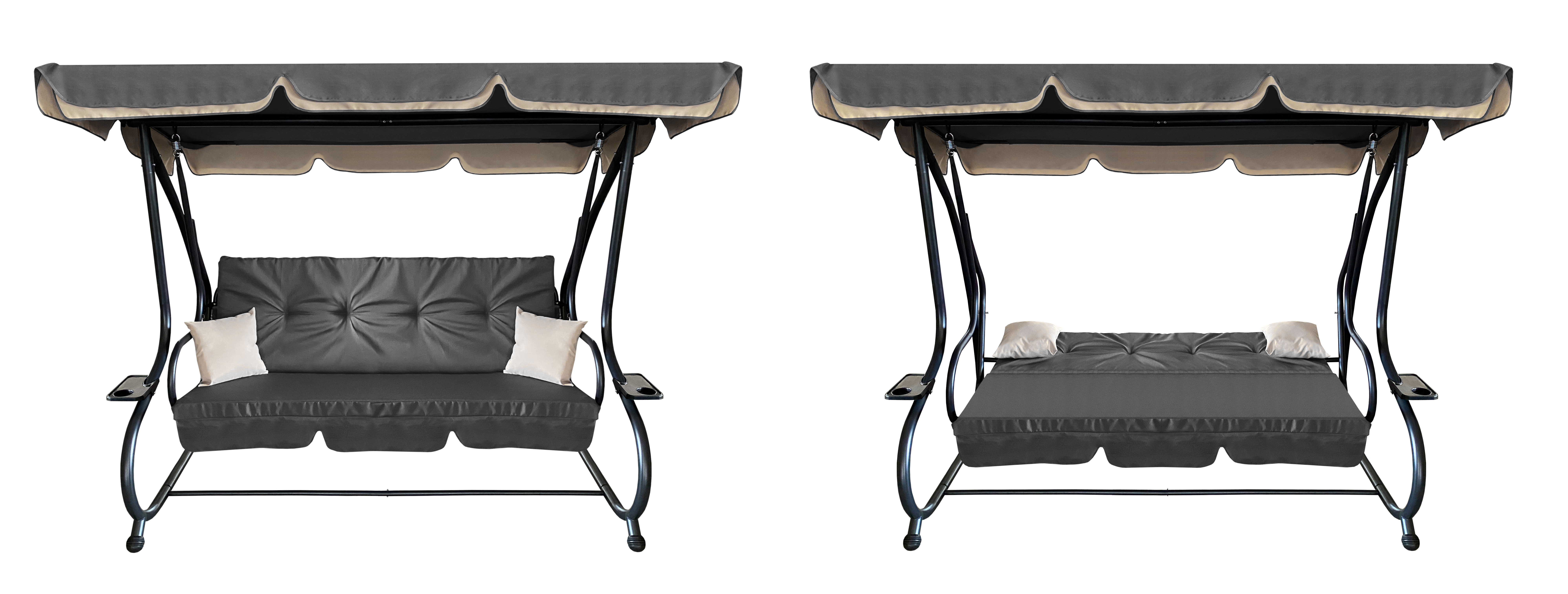 Jedinečnou vlastností této houpačky je její 2v1 design, který umožňuje snadno přeměnit houpačku na pohodlné lehátko. Stačí několik jednoduchých kroků a můžete si užívat relaxaci v leže. Tato funkce je ideální pro ty, kteří chtějí maximálně využít prostor a mít možnost volby mezi sezením a ležením.