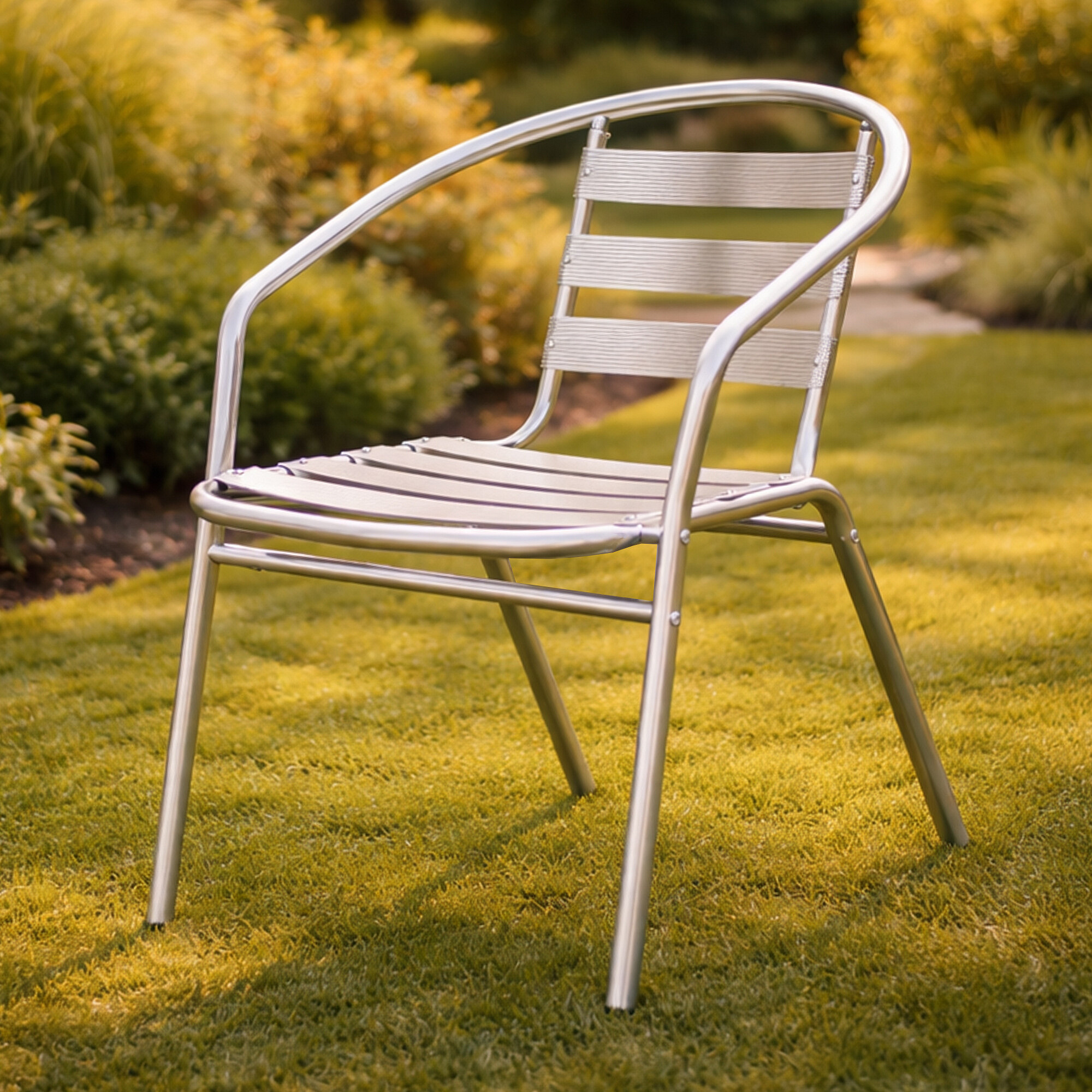 Zahradní židle s celohliníkovou konstrukcí, v moderním designu, vhodná pro zahrady, terasy, verandy, balkóny či zahradní restaurace.