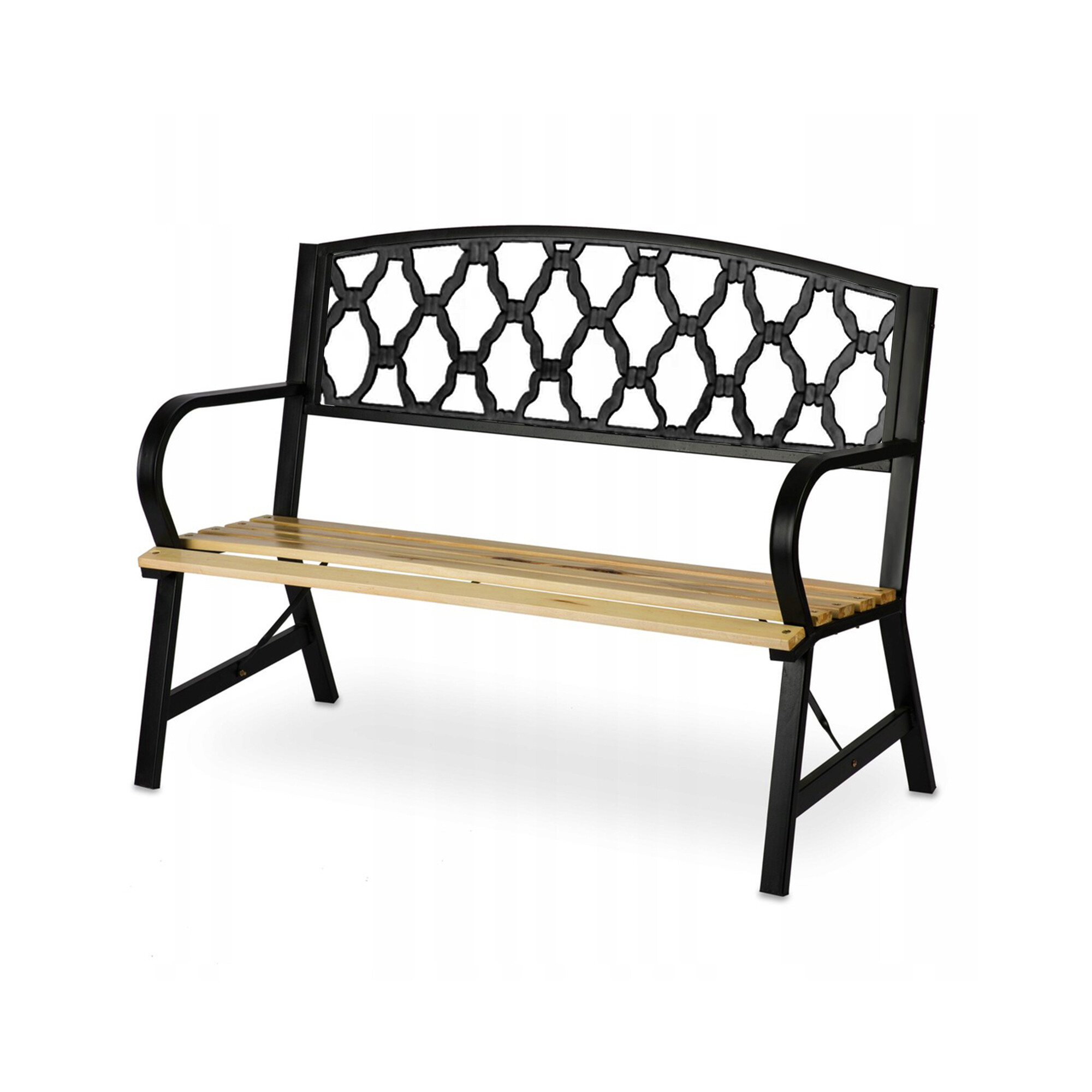 Pevná ocelová konstrukce, která je doplněna o dřevěné latě. Nosnost lavice 150 kg.