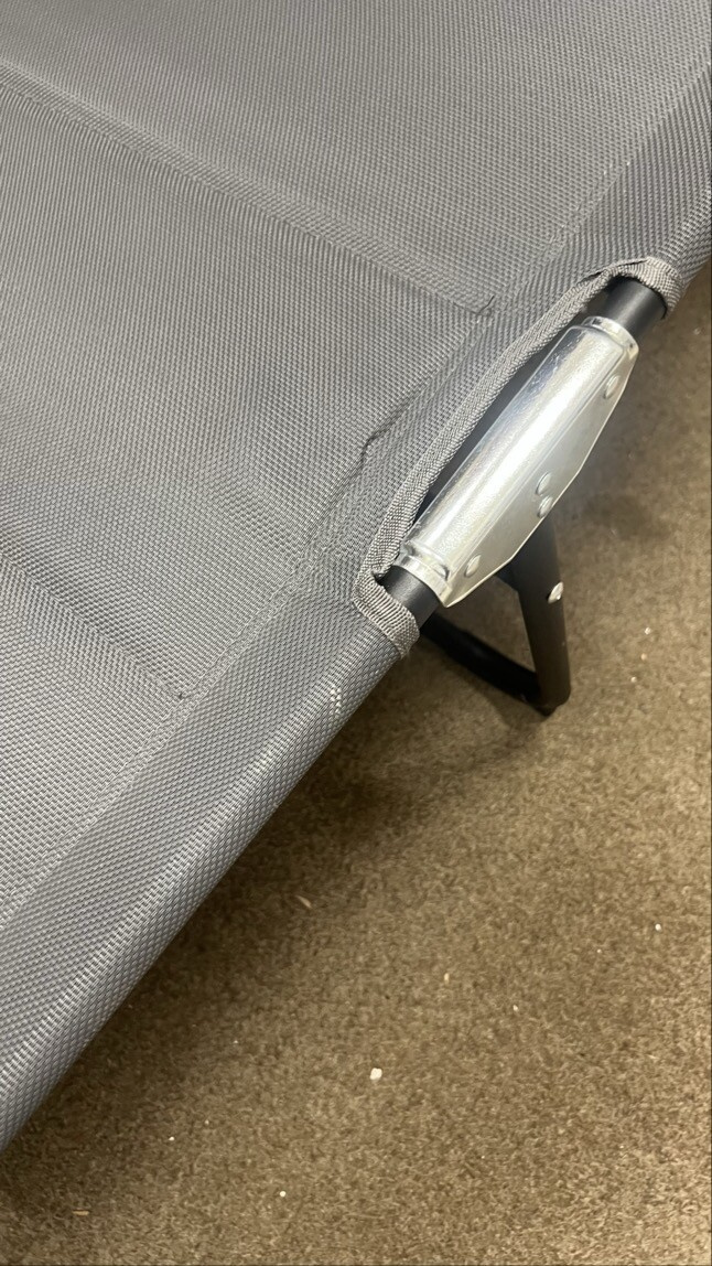 Vady mohou vyžadovat drobnou opravu, nemají však vliv na celkový vzhled ani stabilitu lehátka.
