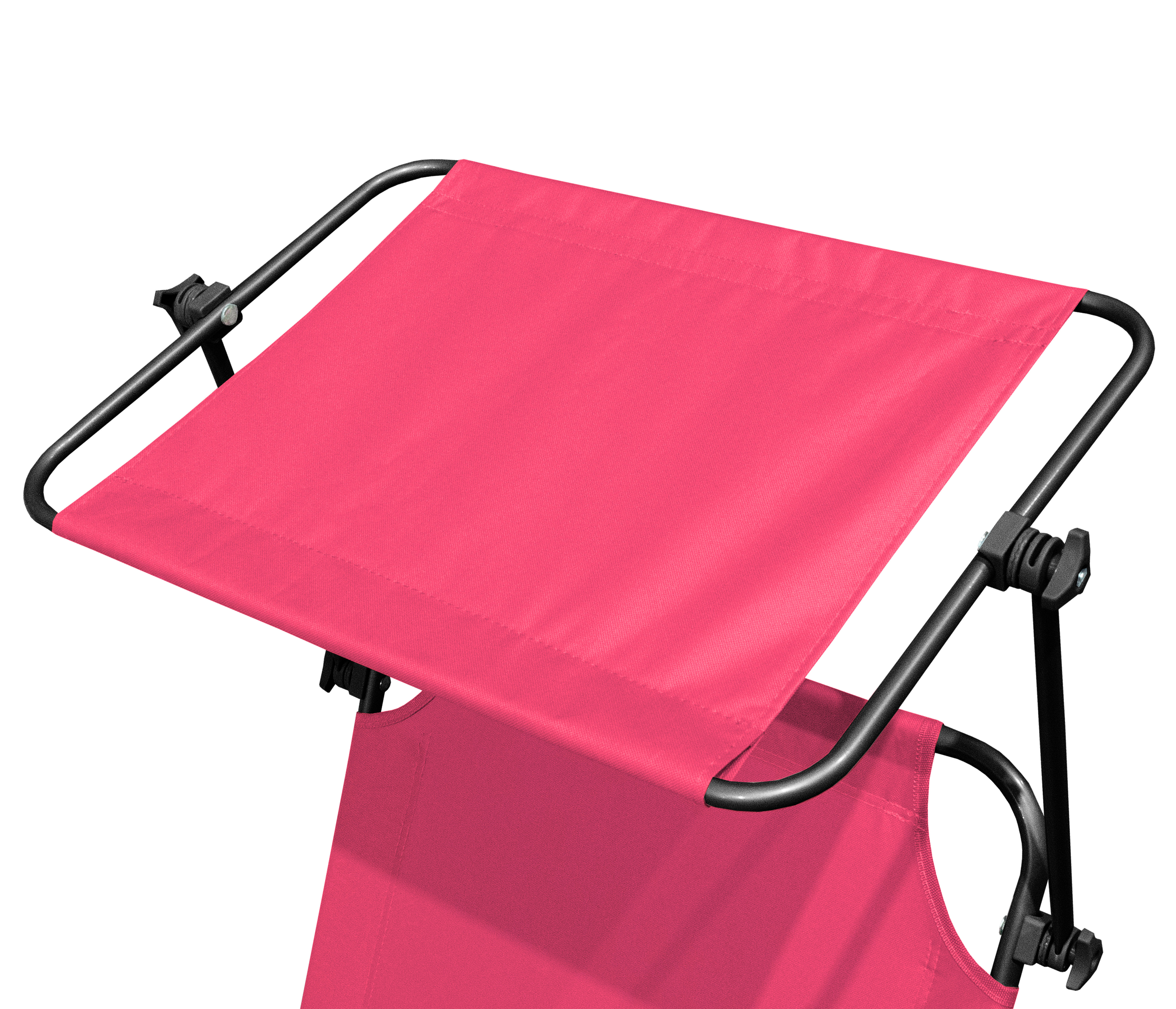 Součástí lehátka je odnímatelná stříška, která se dá libovolně nastavit a ochrání obličej před ostrým sluníčkem. Opěrku zad na lehátku lze nastavit do 4 různých poloh.