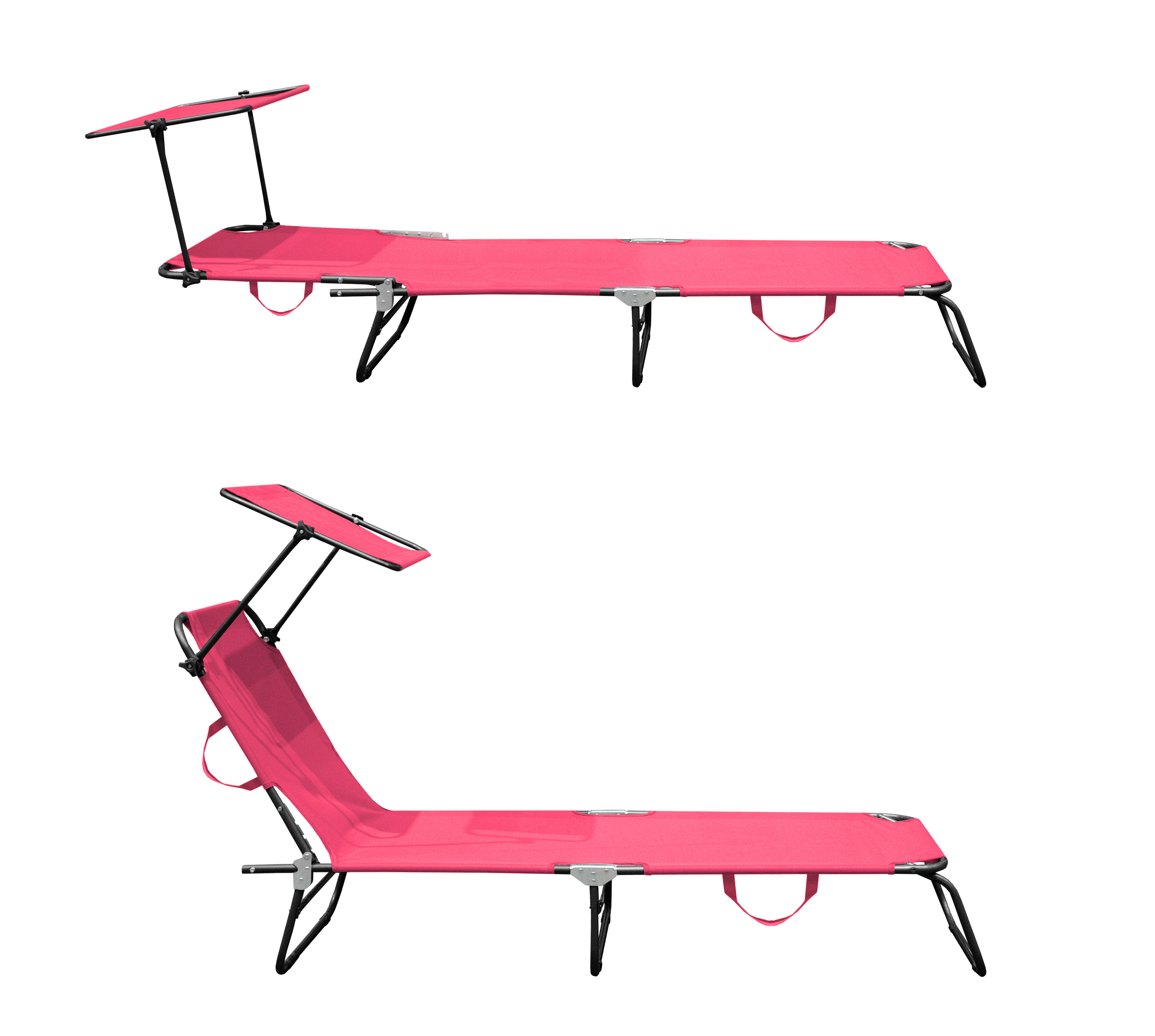 Skládací zahradní lehátko se zpevněnou ocelovou konstrukcí, v moderním designu, vhodné pro zahrady, na kempování či pláže.