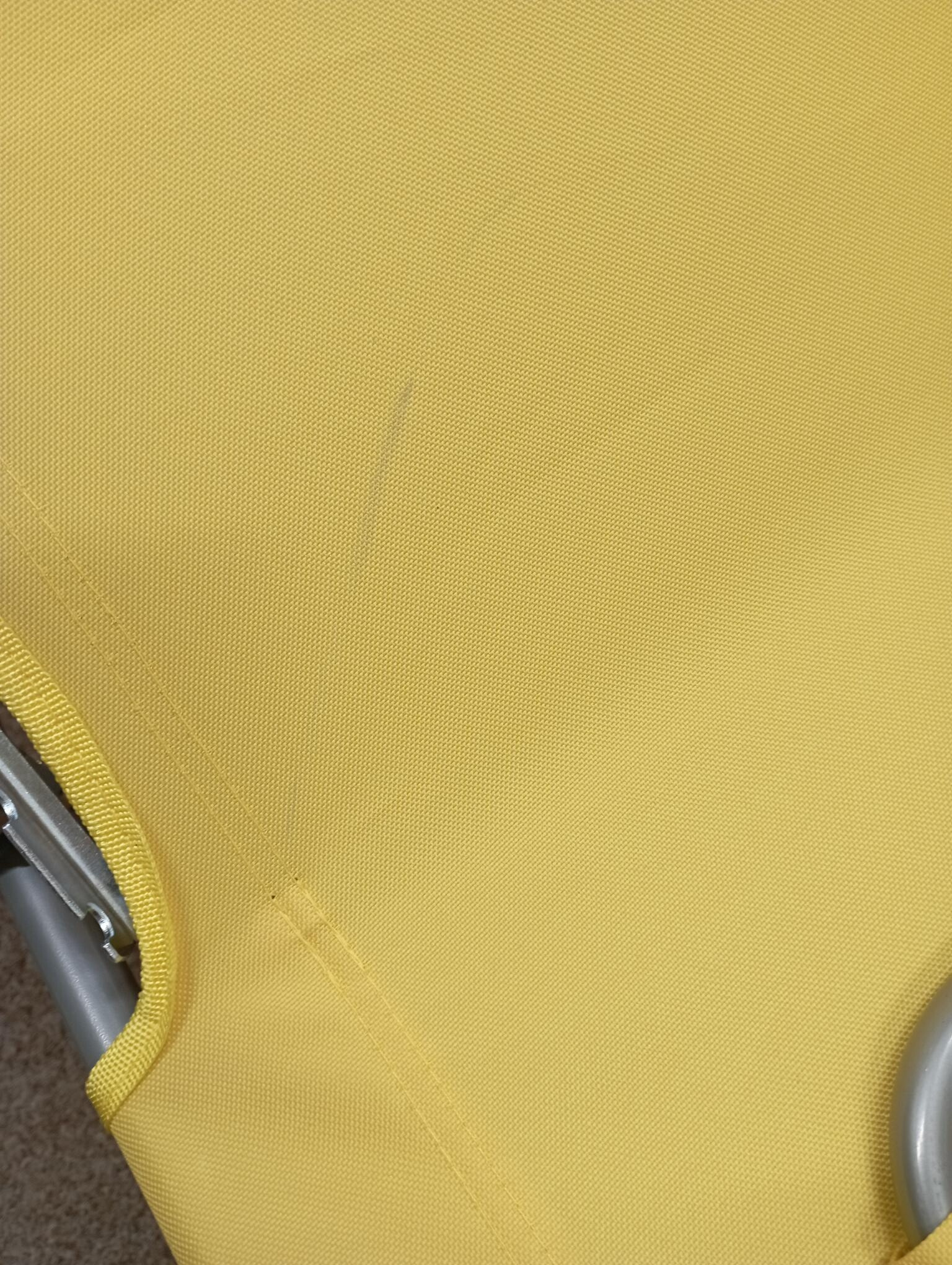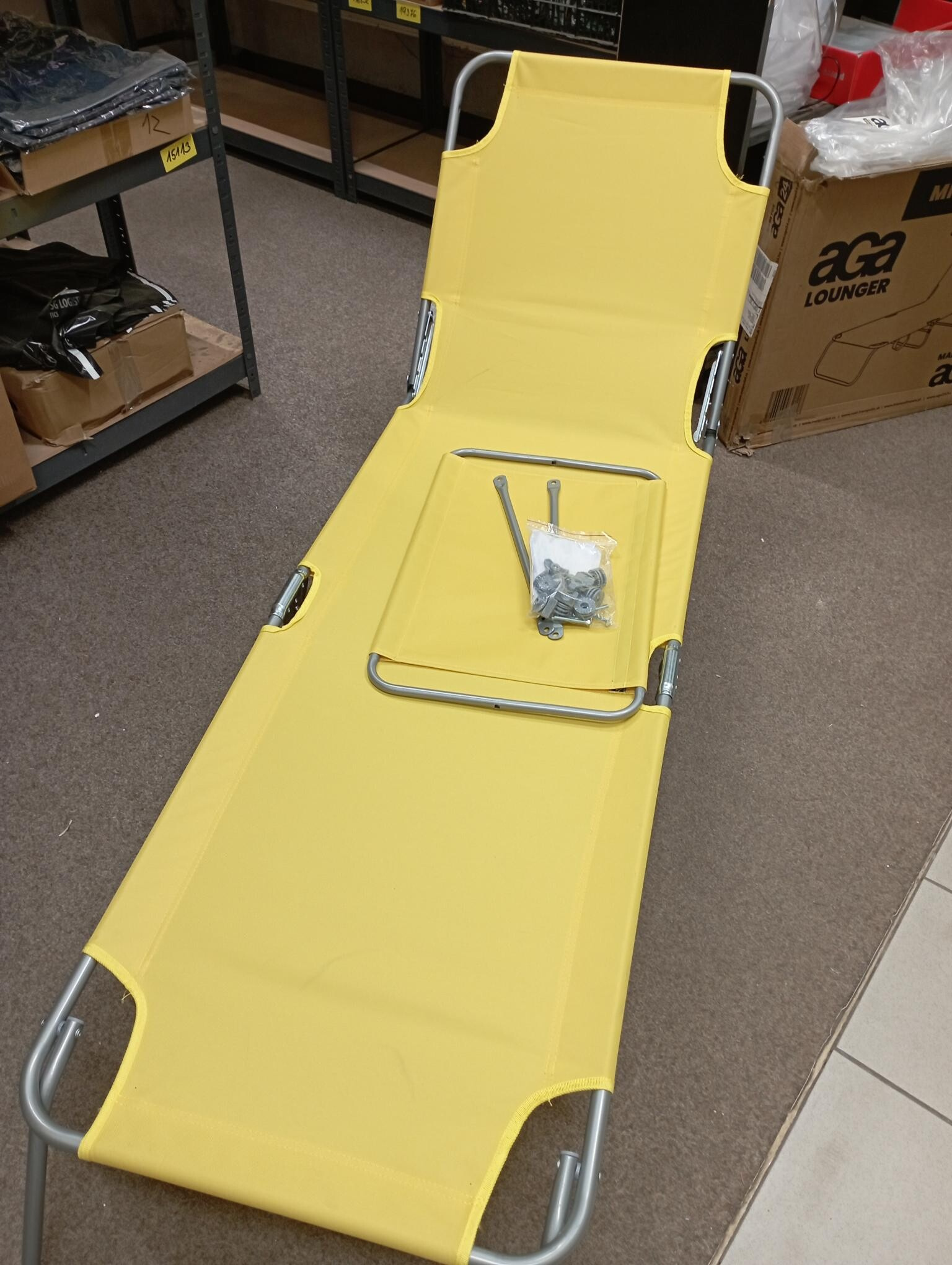 Horní strana polstrování má mírné špinavé čmouhy a konstrukce je lehce odřená. Lehátko je kompletní, stabilní a funkční. Dodáváno bez originálního balení.