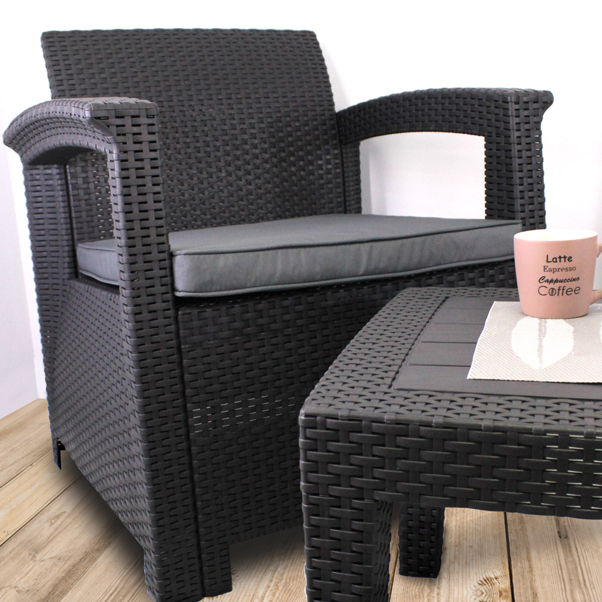 Velkou výhodou je i jednoduchá údržba a snadné sestavení zahradní ratanové soupravy. Pohodlné odnímatelné polštářky o tloušťce 4 cm poskytují potřebný komfort během sezení.