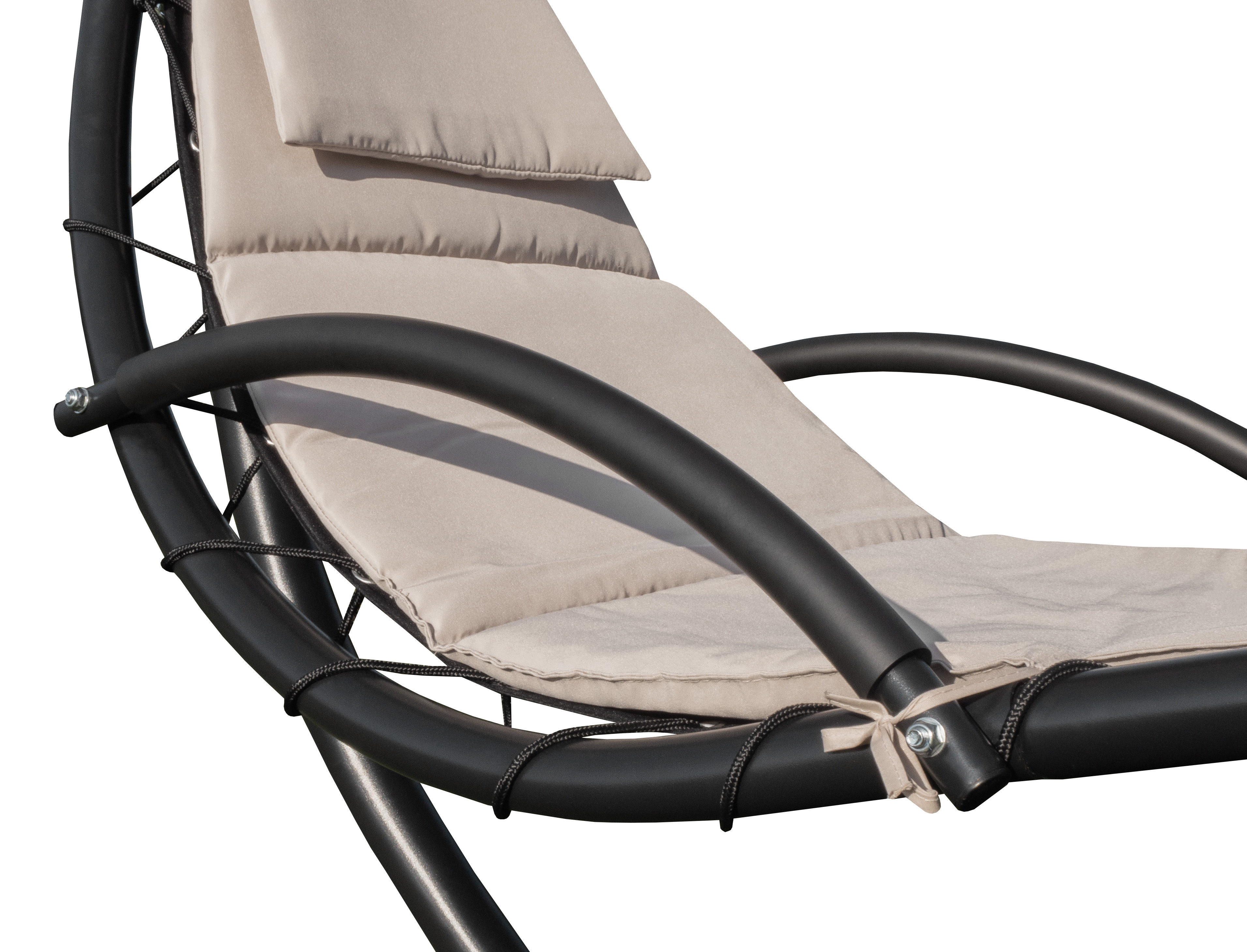 Lehátko má měkčené polstrování i vytvarovaný polštář pro maximální pohodlí při ležení i houpání. Jeho povrch je navíc z rychleschnoucího polyesteru v kvalitě 180 g, který je více odolný proti roztržení.