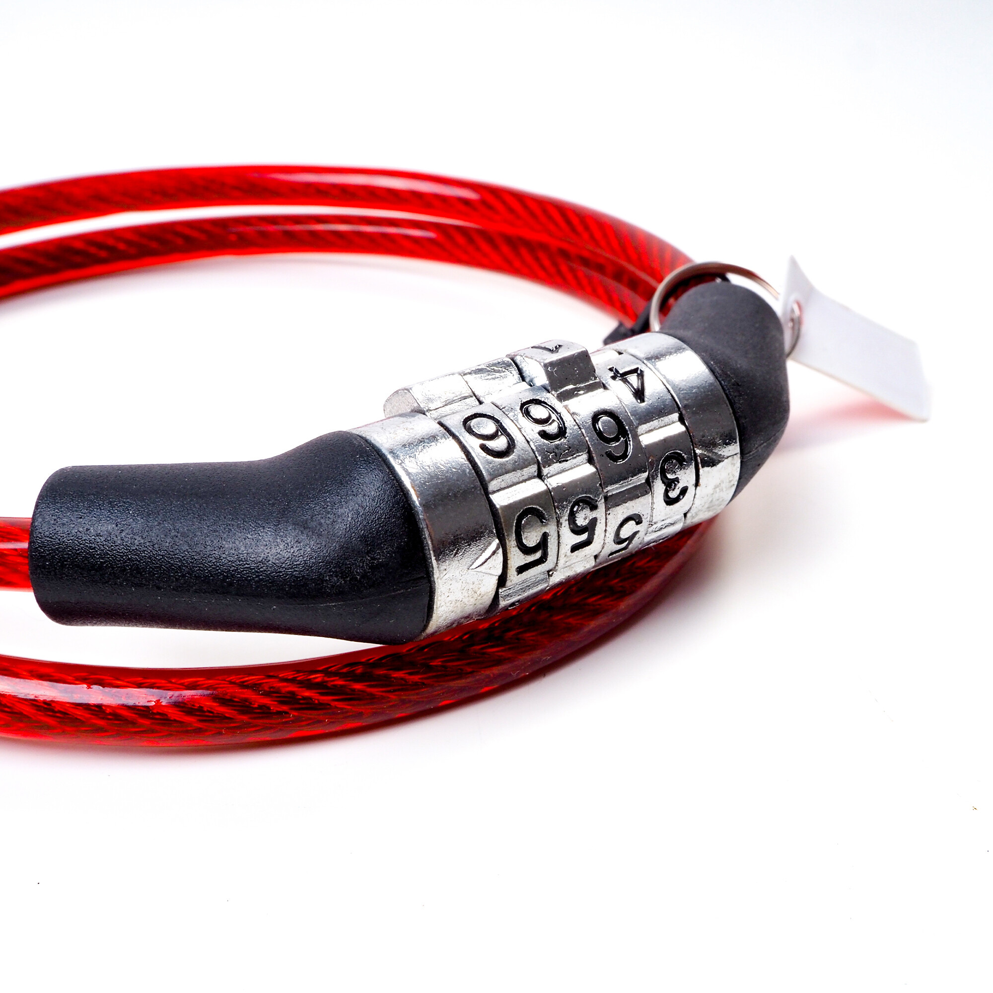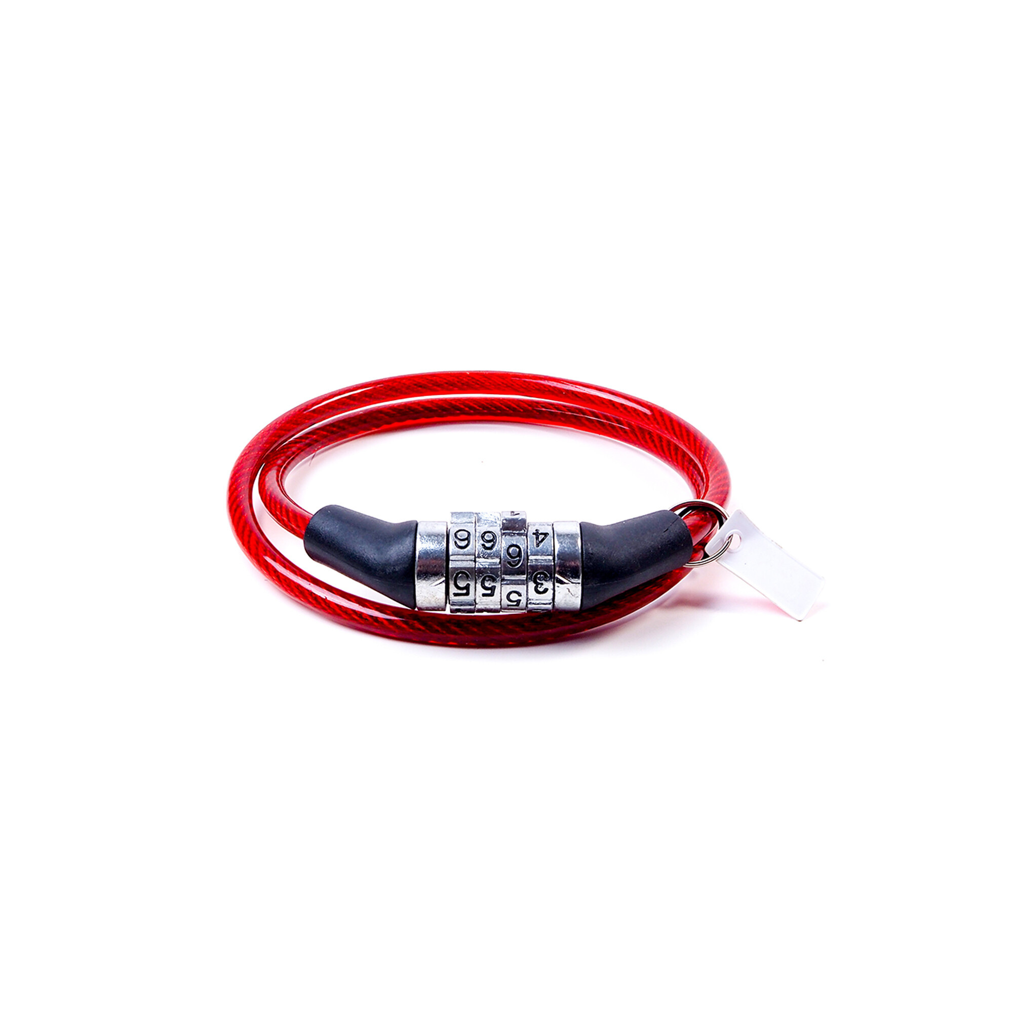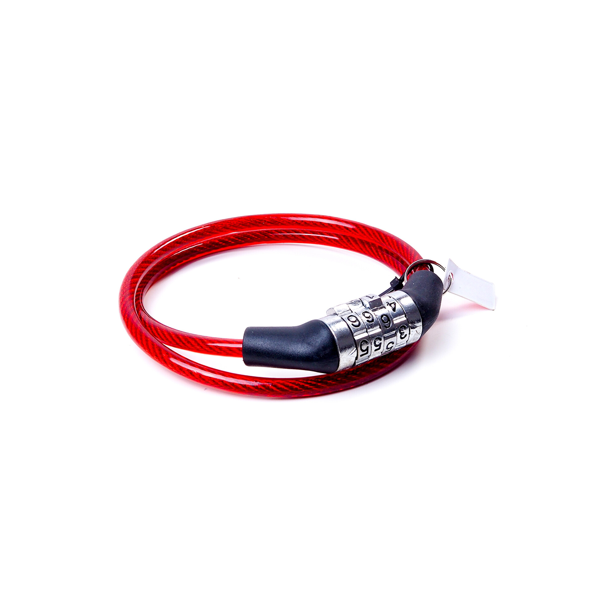 Tento kvalitní zámek na kolo je vyroben z tvrzené oceli chráněný povrchem z PVC, poskytuje stupeň zabezpečení a snadno se užívá. Otevírá se pomocí čtyřmístného kódovaného zámku. Na délku má 60 cm a na šířku 6 cm.