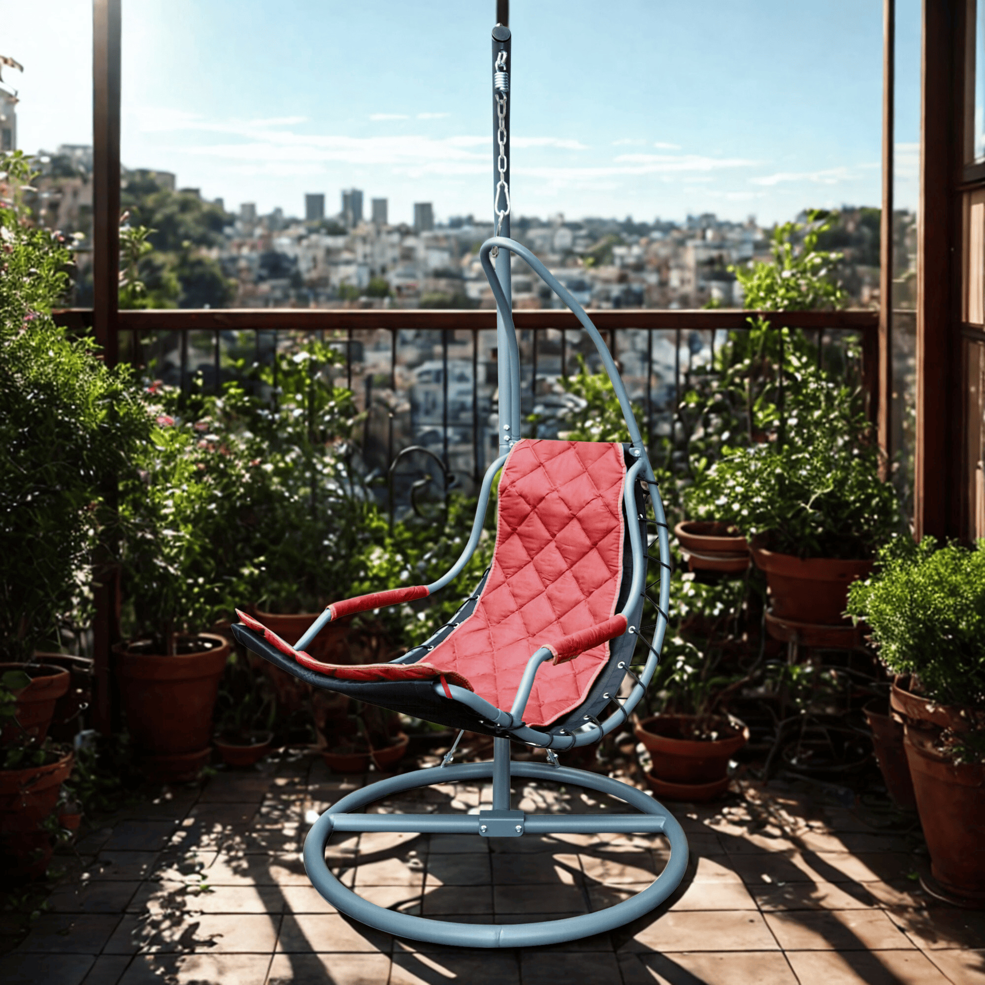 Závěsné křeslo je navrženo s ohledem na moderní estetiku a maximální pohodlí. Jeho červená barva se snadno hodí do jakéhokoli interiéru nebo exteriéru, ať už ho umístíte na terasu, balkon, do obývacího pokoje nebo na zahradu.