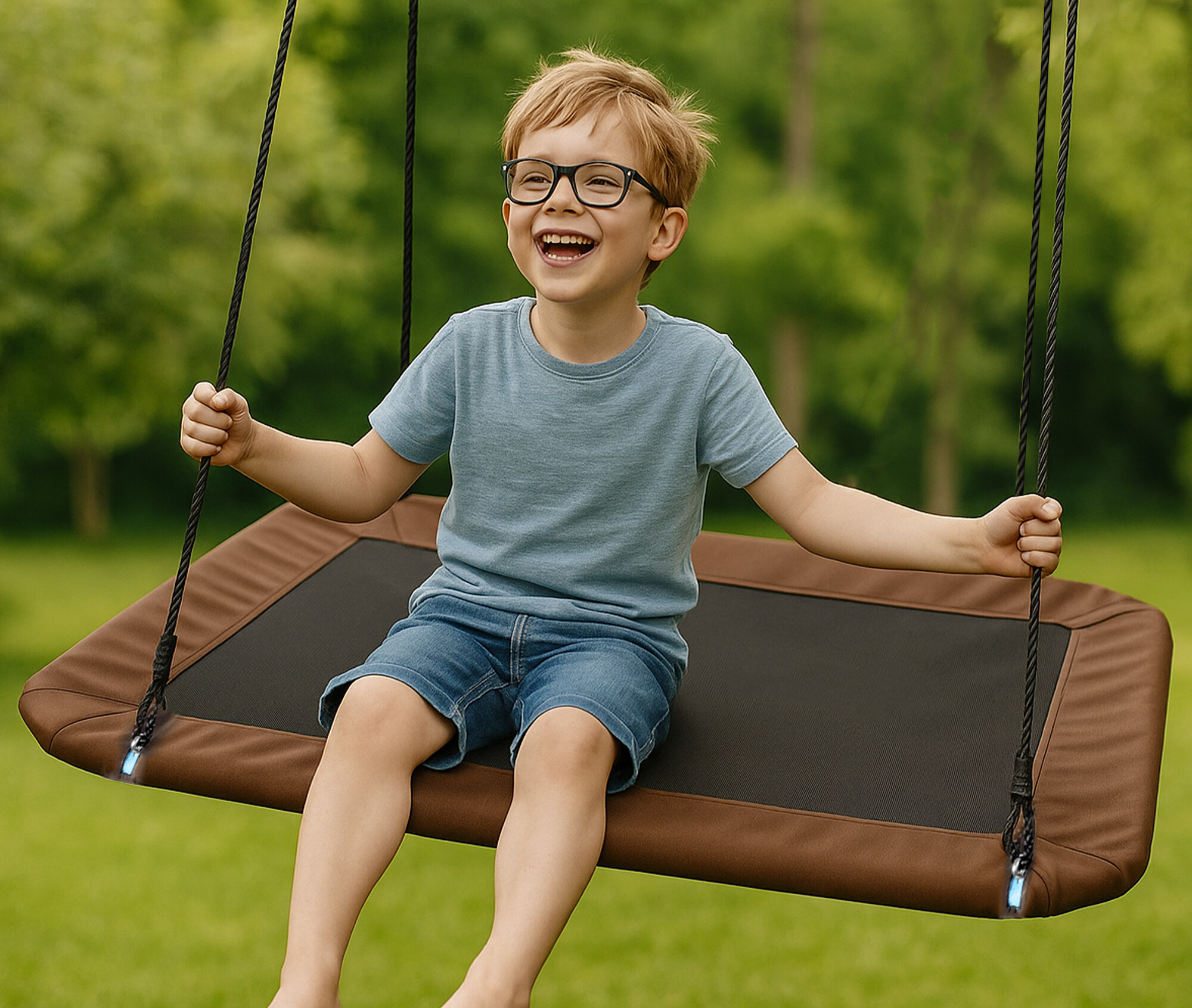 Houpací obdelník je vybaven silnými lany o průměru Ø 10 mm a délce 130 cm. Tato lana jsou navržena tak, aby vydržela vysoké zatížení a poskytovala maximální bezpečnost. S nosností až 150 kg je tento houpací obdelník vhodný pro děti i dospělé.