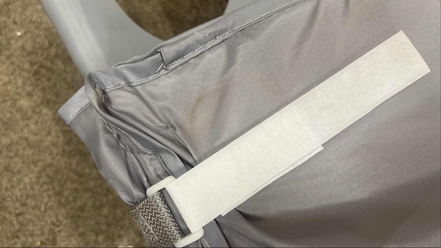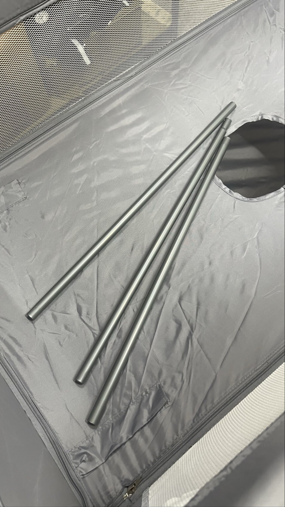 Chybí jedna ze čtyř podpůrných trubek, které slouží k vytvoření vyvýšeného patra. Pro plné využití této funkce je nutné chybějící díl nahradit jiným vhodným prvkem. Na samotnou stabilitu a bezpečné používání postýlky ve standardním režimu to však nemá vliv.