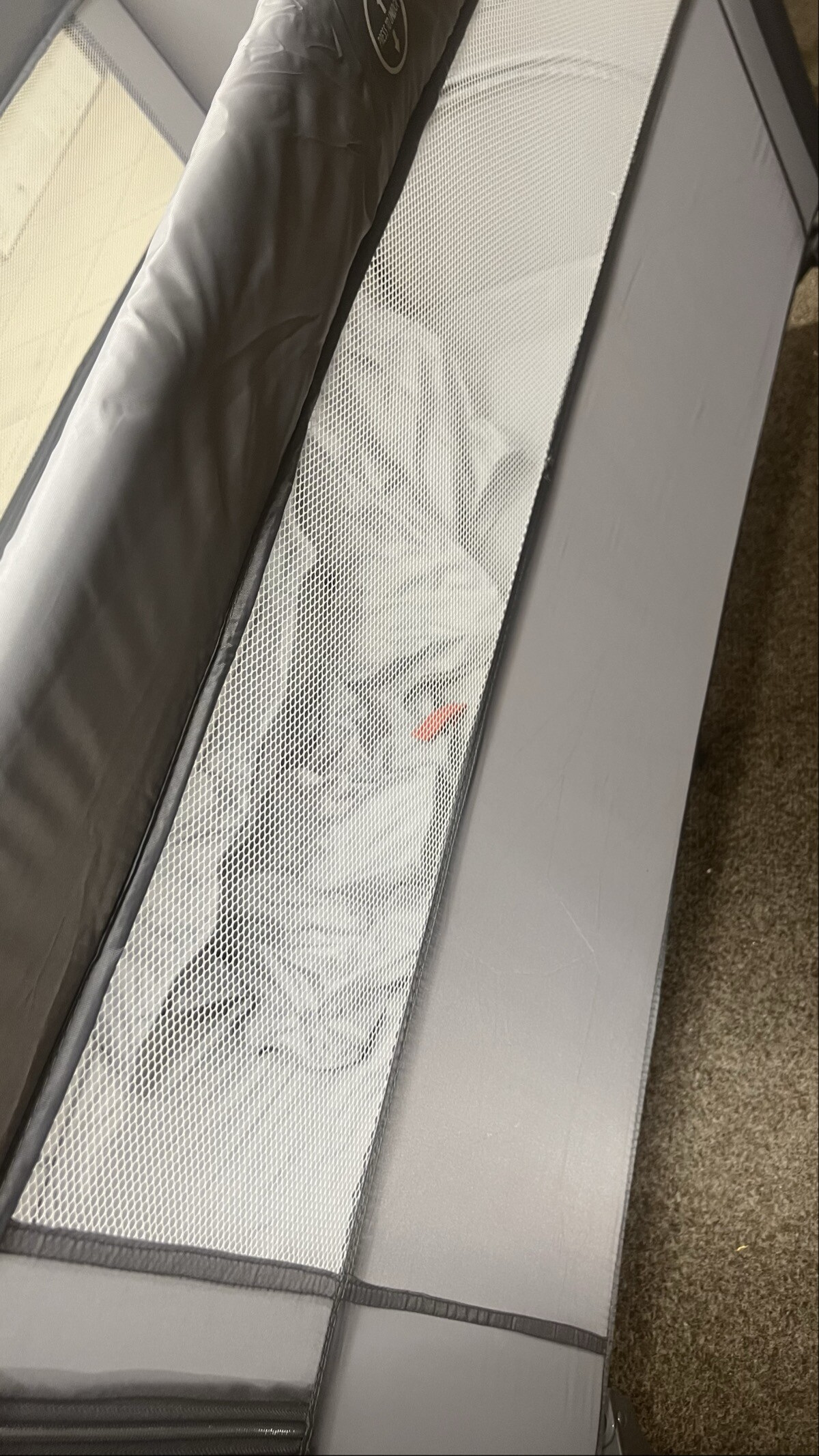 Tato cestovní postýlka je kompletní a plně použitelná, avšak spadá do kategorie 2. jakosti z důvodu drobných nedostatků.
