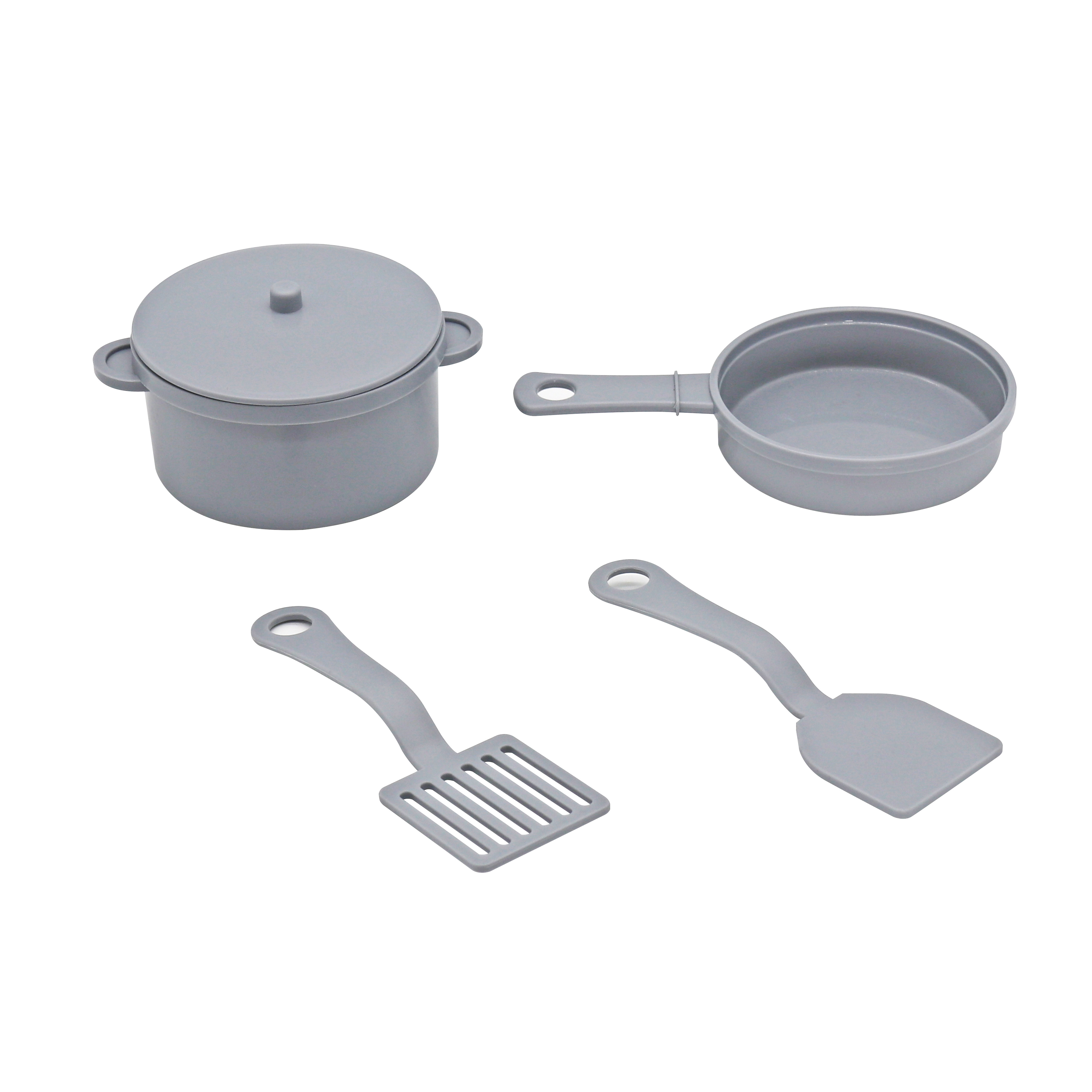 Pro přípravu chutných pokrmů je dětská kuchyňka vybavena nádobím. V kuchyňce nechybí police pro uložení nádobí a háčky pro zavěšení kuchyňského náčiní.
