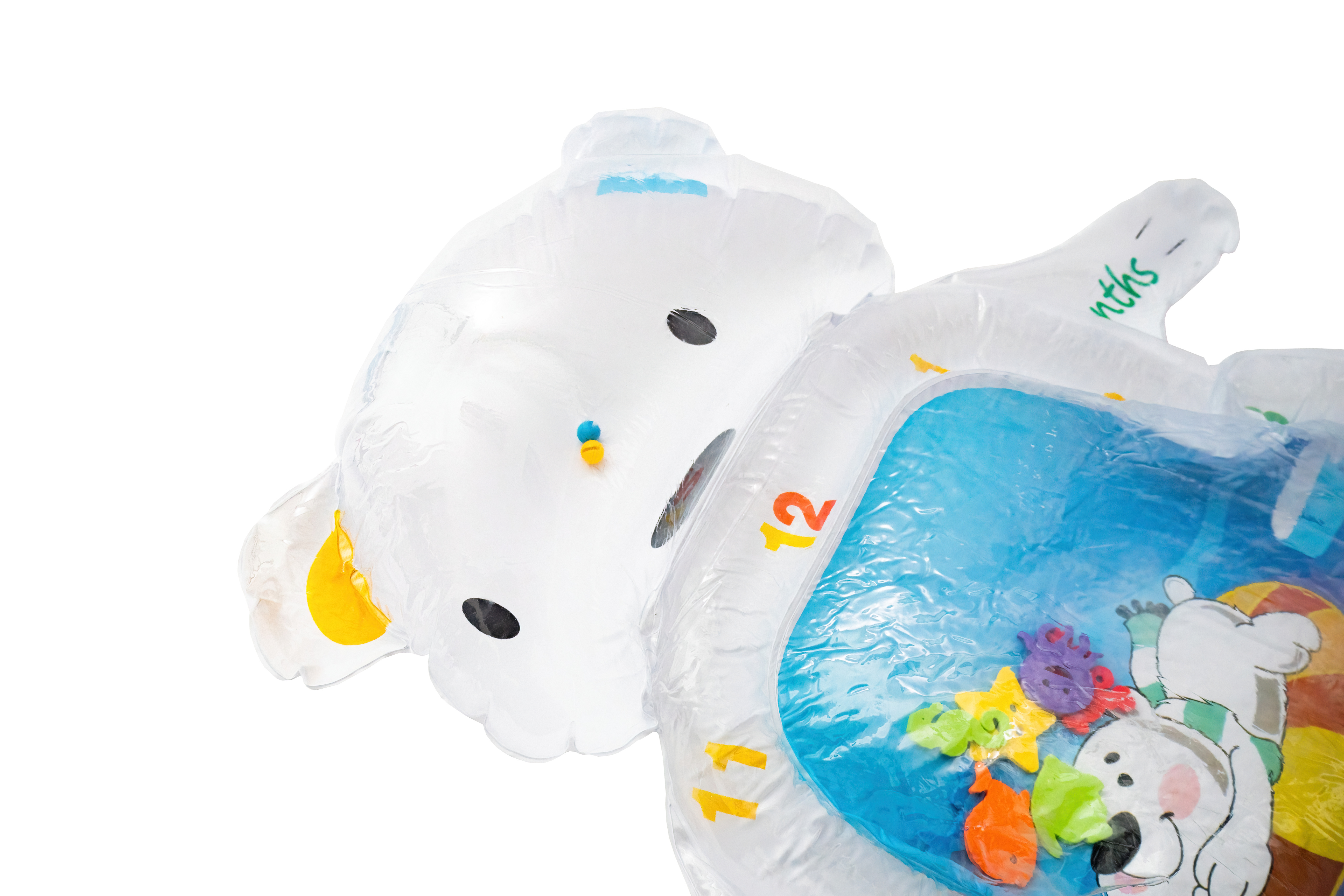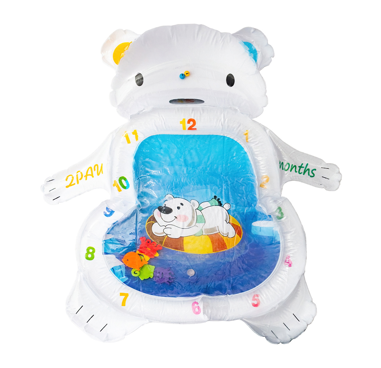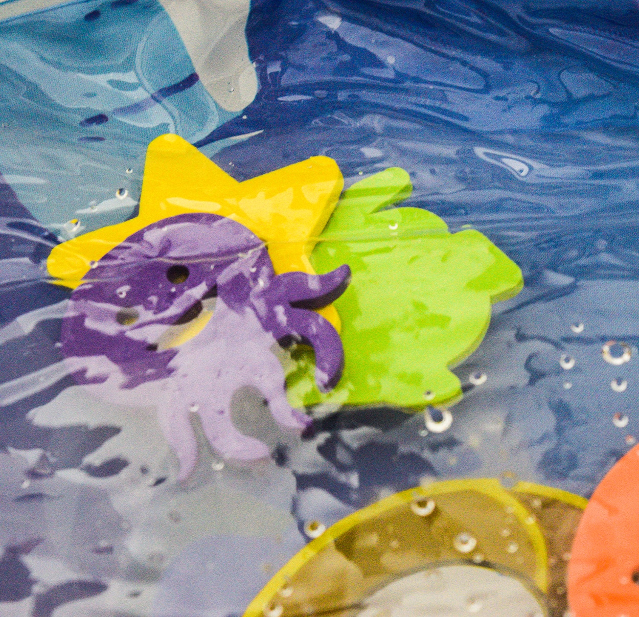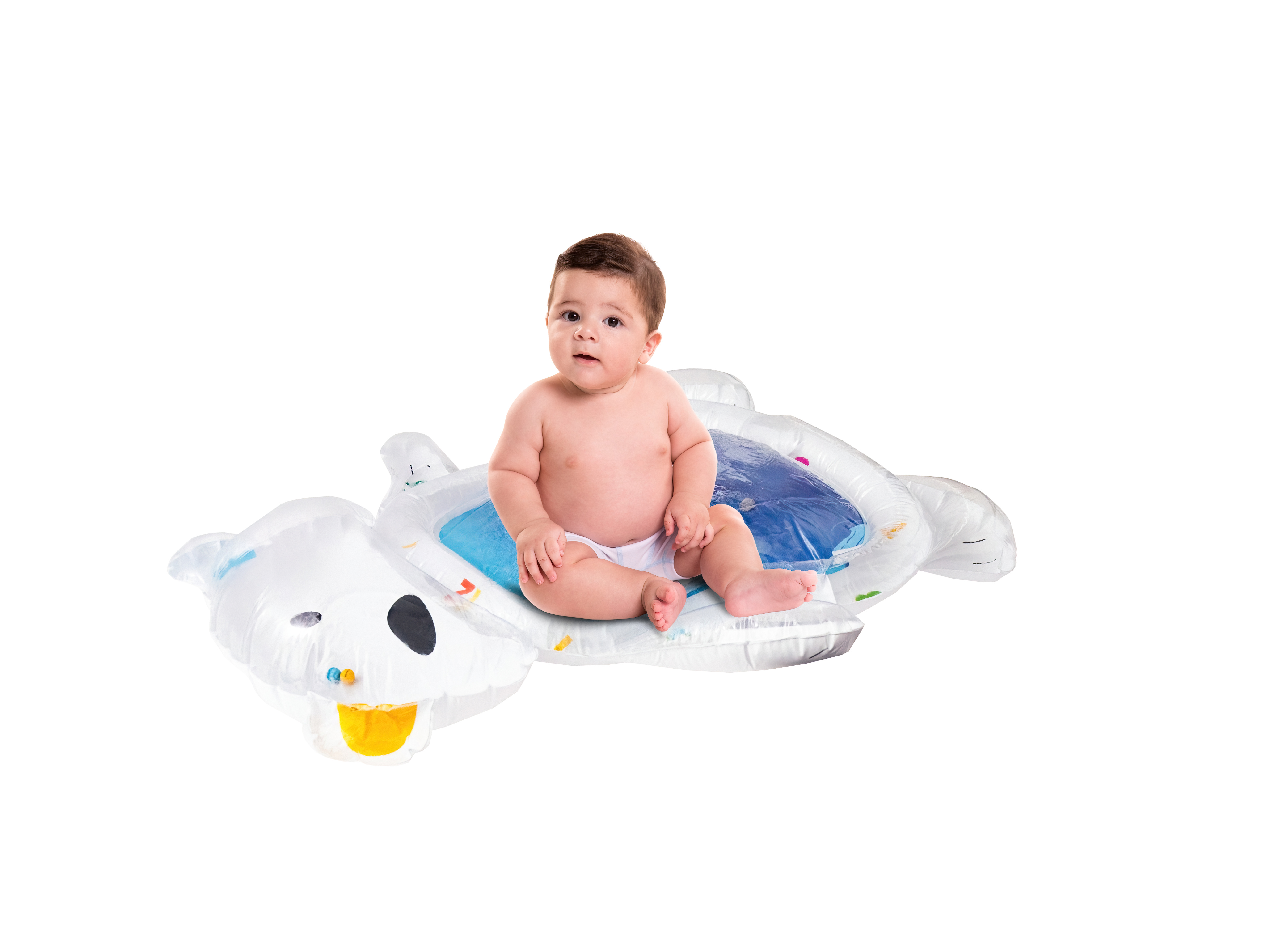 Stačí nafoukat okraj podložky a střed naplnit vodou popřípadě je možnost ji nafouknout. Díky vodě uvnitř se začnou pohybovat prvky ve tvaru mořských živočichů, které dítě povzbuzují ke hře.