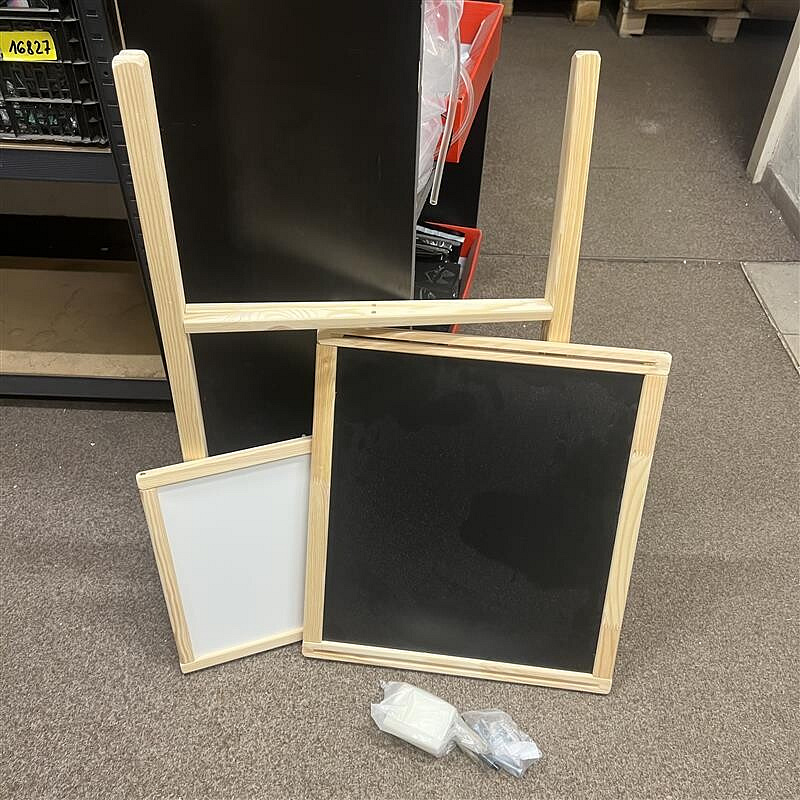 - Sada obsahuje - otočnou tabuli, 3 křídy, 1 fix, 1 houbu