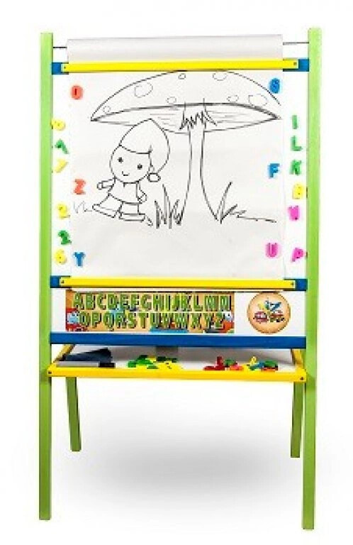 - Sada obsahuje - 2 dětské tabule, 5 barevných kříd, 1 fix, 1 role papíru (20 m), počítadlo, 1 houba,