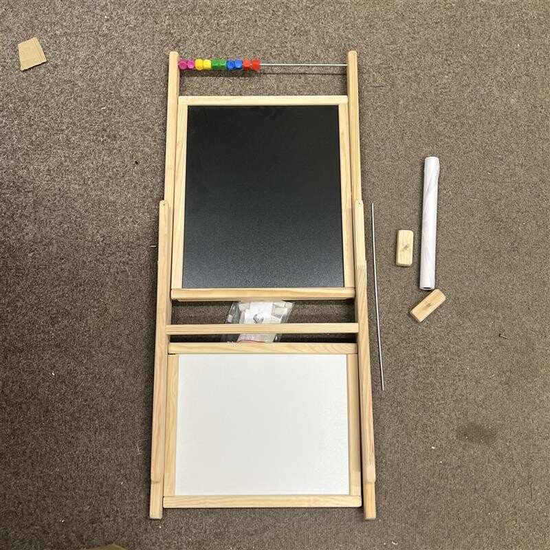- Sada obsahuje - otočnou tabuli, 3 křídy, 1 fix, 1 roli papíru (15 m), počítadlo, 1 houbu