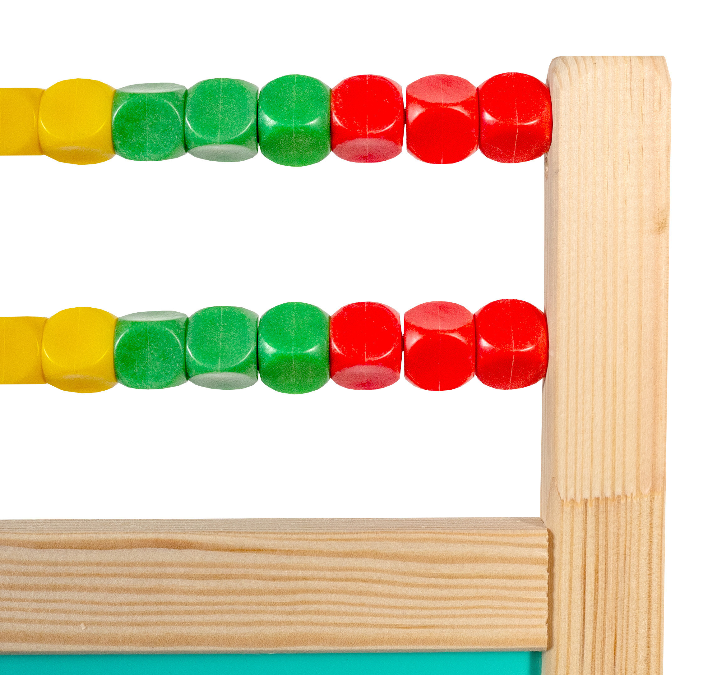 Kreslit lze na obě strany tabule, na jednu fixem a na druhou křídami. Součástí tabule je i dvouřadé počítadlo, které obsahuje 15 barevných kuliček v každé řadě.