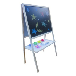 Oboustranná dětská magnetická tabule s odkládací poličkou, na praktickém stojanu, od firmy Aga4Kids.