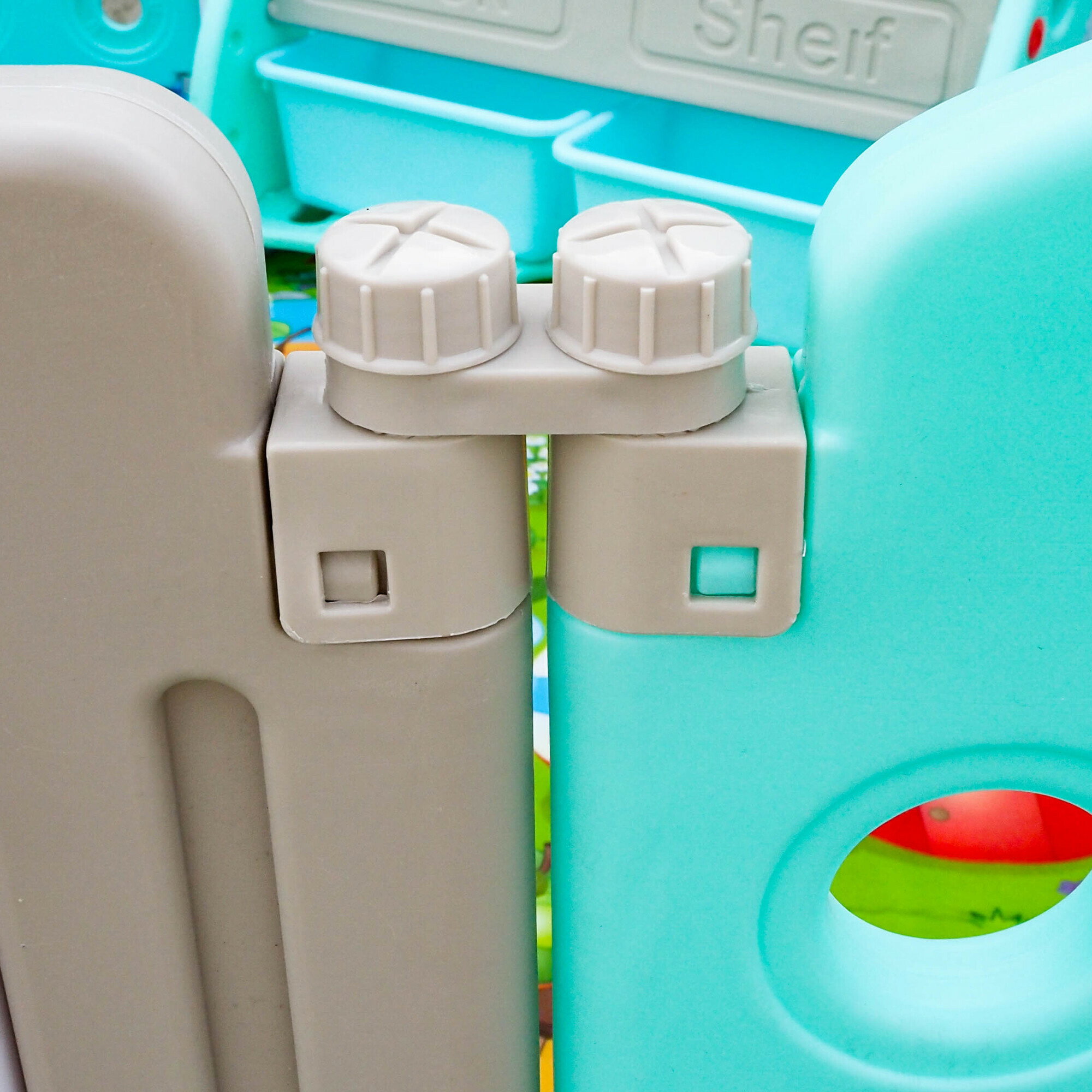 Ohrádka je vyrobena z vysoce kvalitního, netoxického plastu, který je bezpečný pro děti a odolný vůči vnějším vlivům.