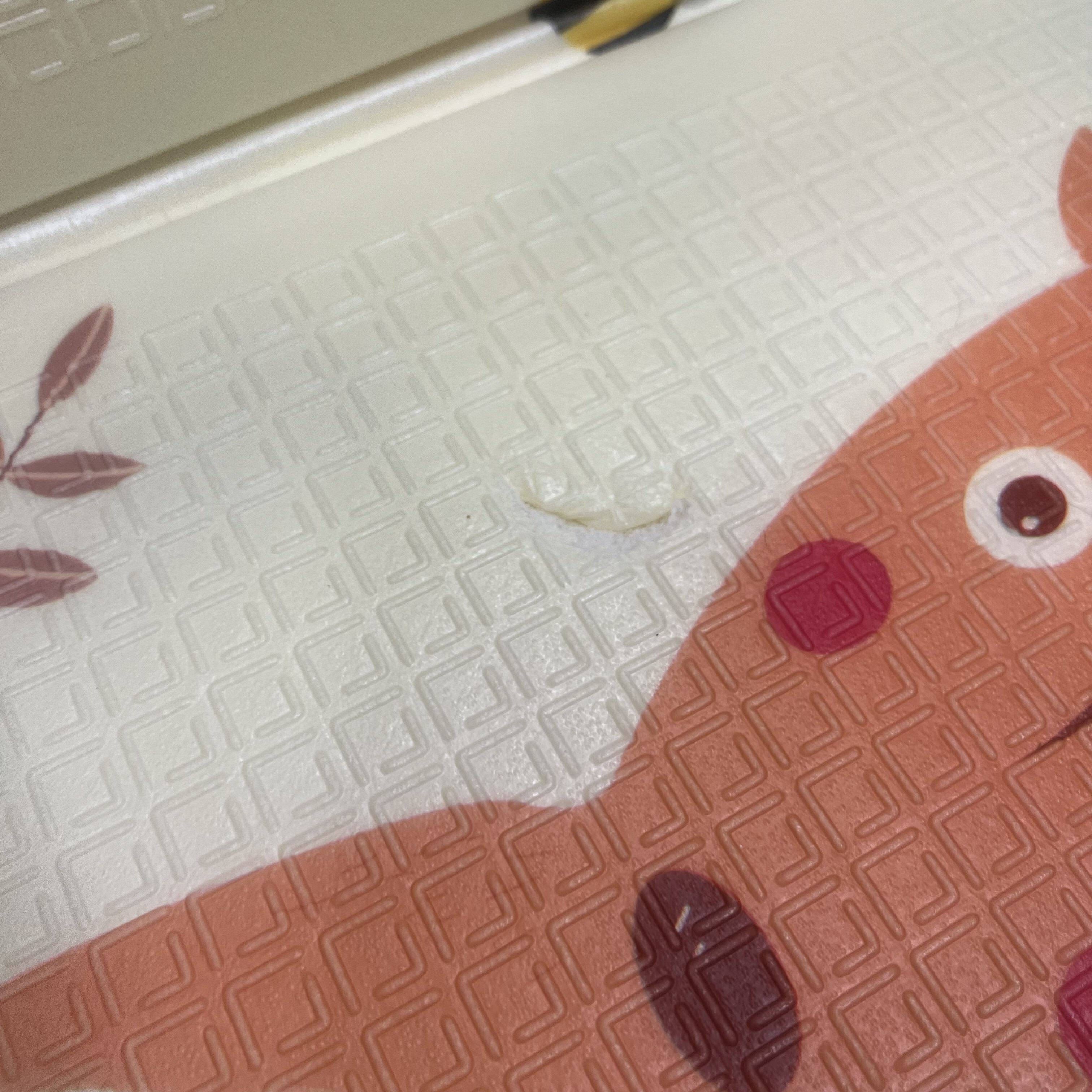 Dětská pěnová podložka jeví mírné poškození, viz. přiložené fotografie.