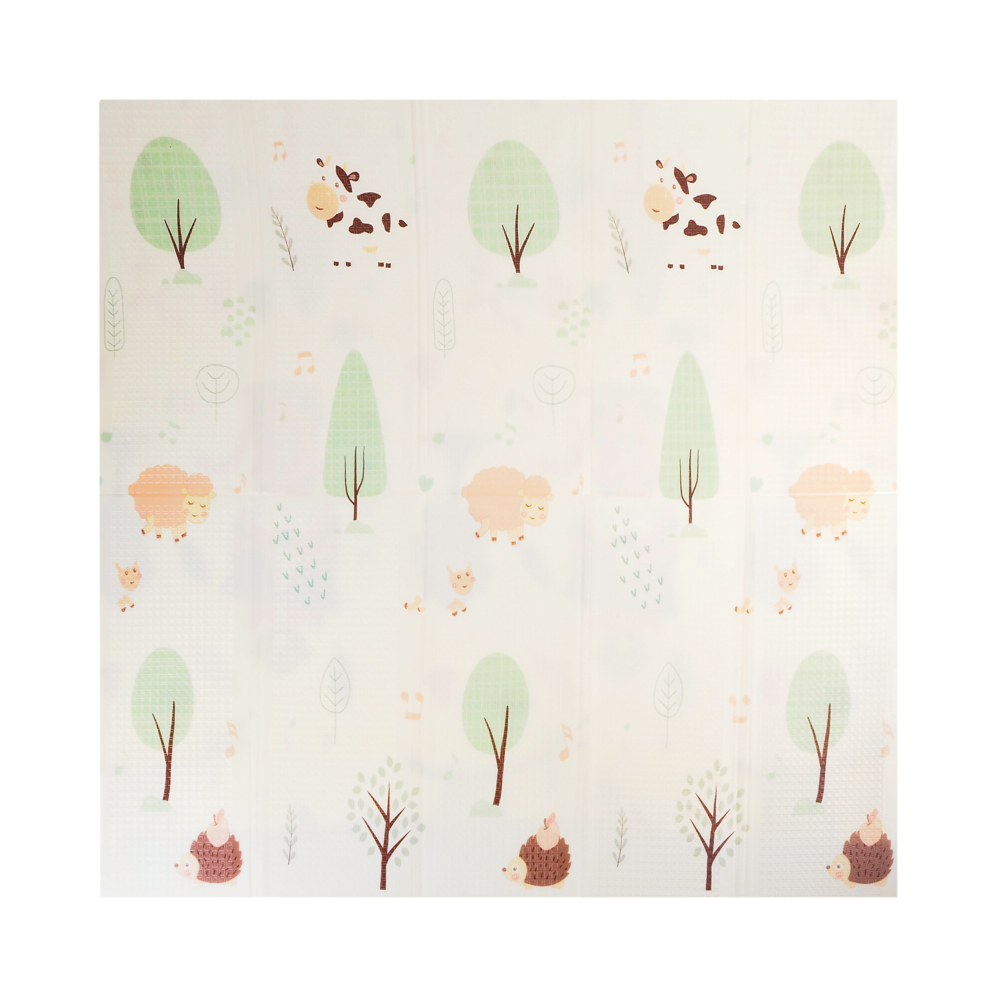 Hrací podložka má oboustranný potisk s veselými motivy a protiskluzový povrch zajistí bezpečnost každé hry.