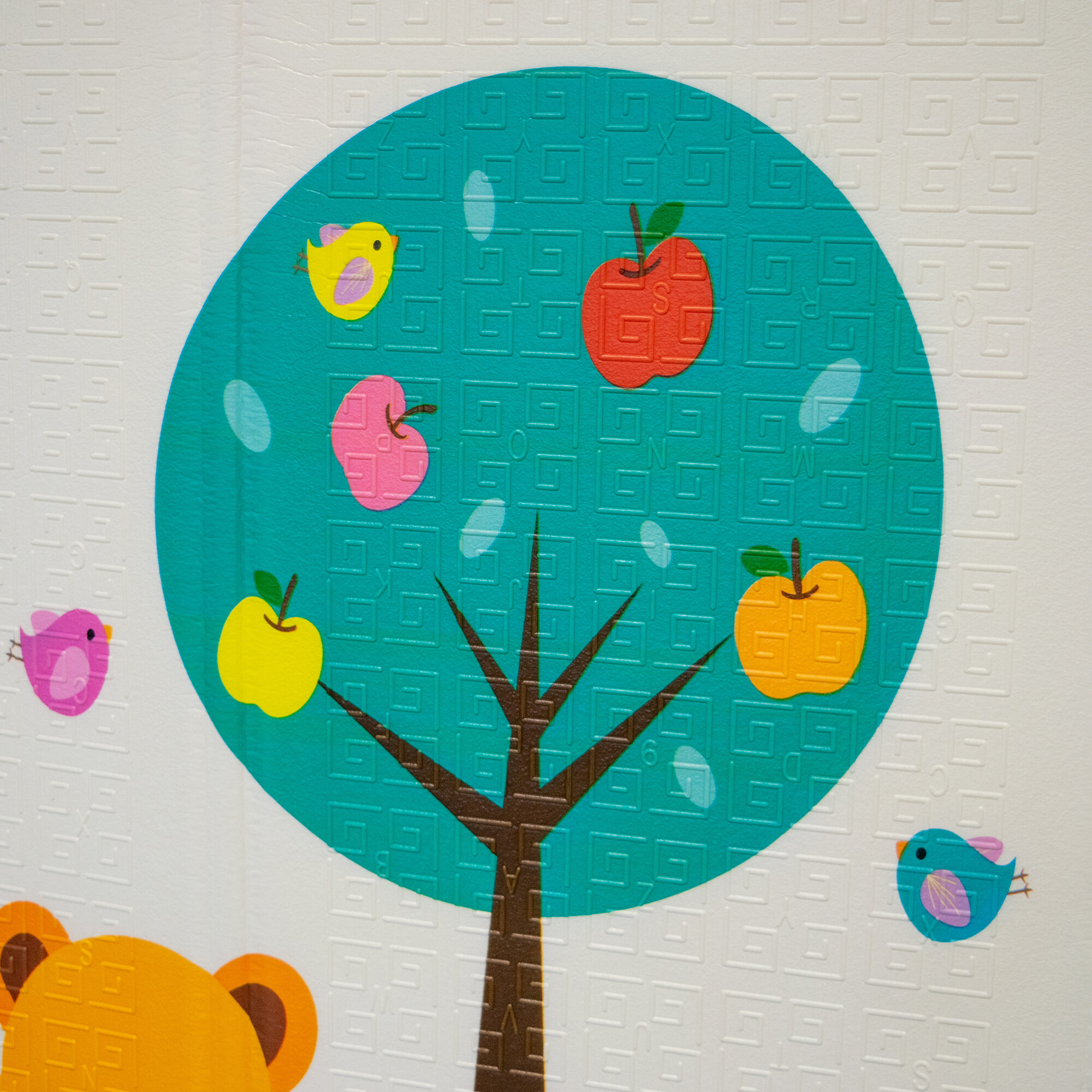 Protiskluzový povrch pomáhá udržet podložku stabilně na místě i při aktivnější hře, zatímco oboustranný potisk s dětskými motivy podporuje zrakové vnímání, orientaci a přirozenou zvídavost dítěte.
