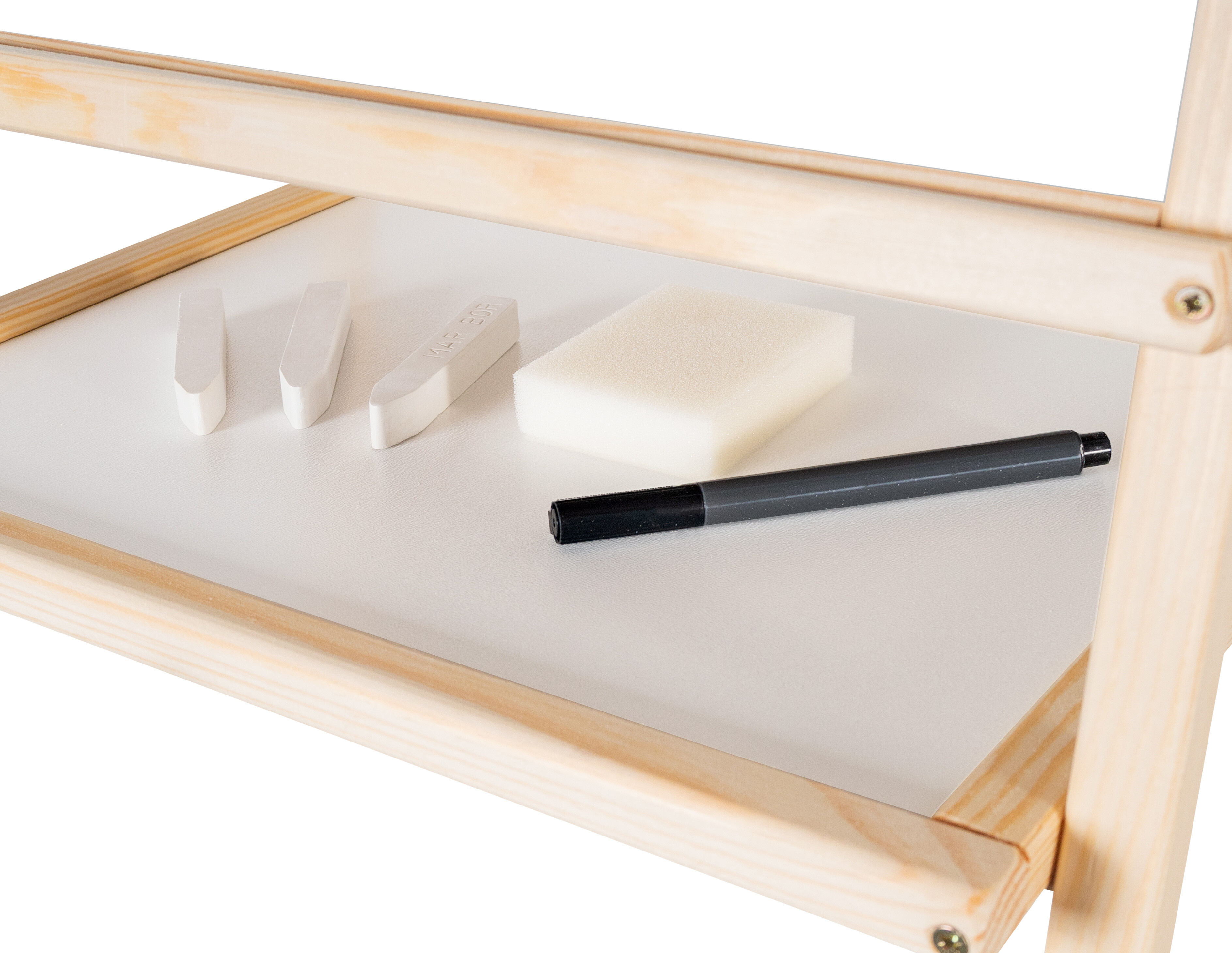 • Sada obsahuje - 2 dětské tabule, 3 křídy, 1 fix, 1 role papíru (20 m), 1 houbu