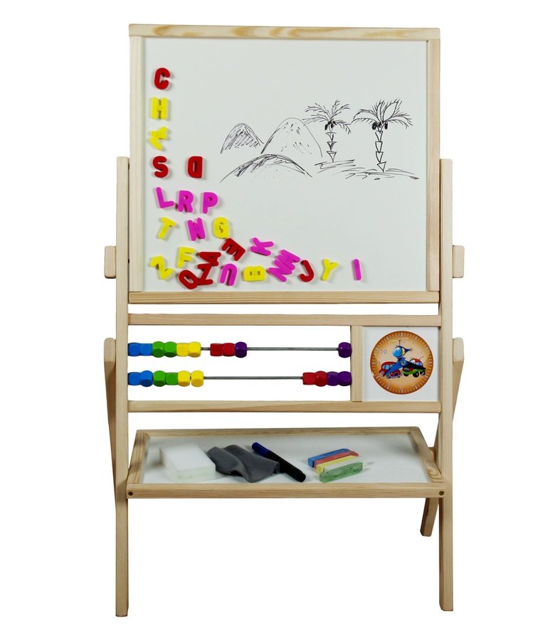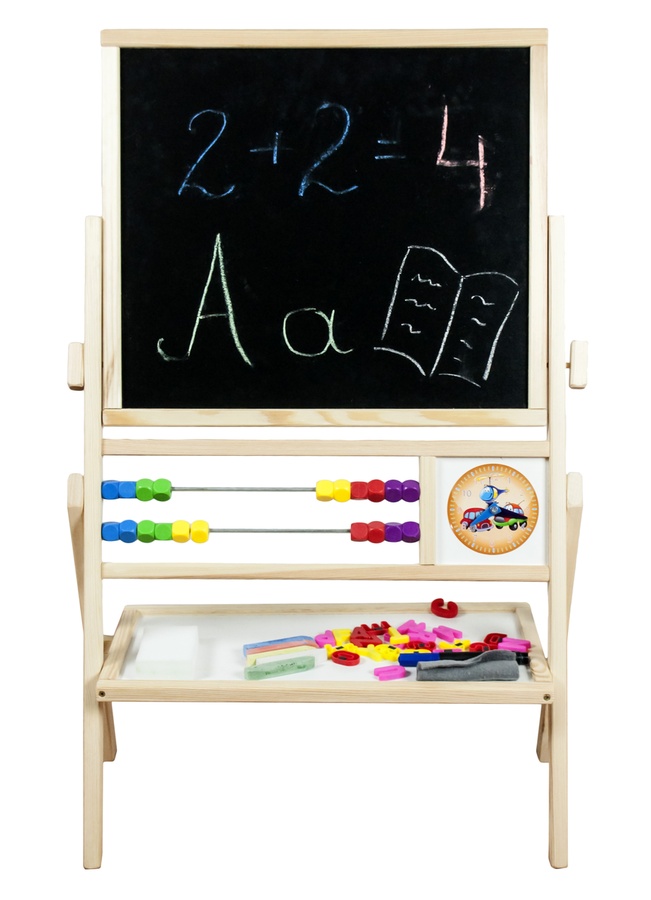Otočná dětská magnetická tabule s odkládací poličkou, počítadlem a hodinami, od firmy Aga4Kids.