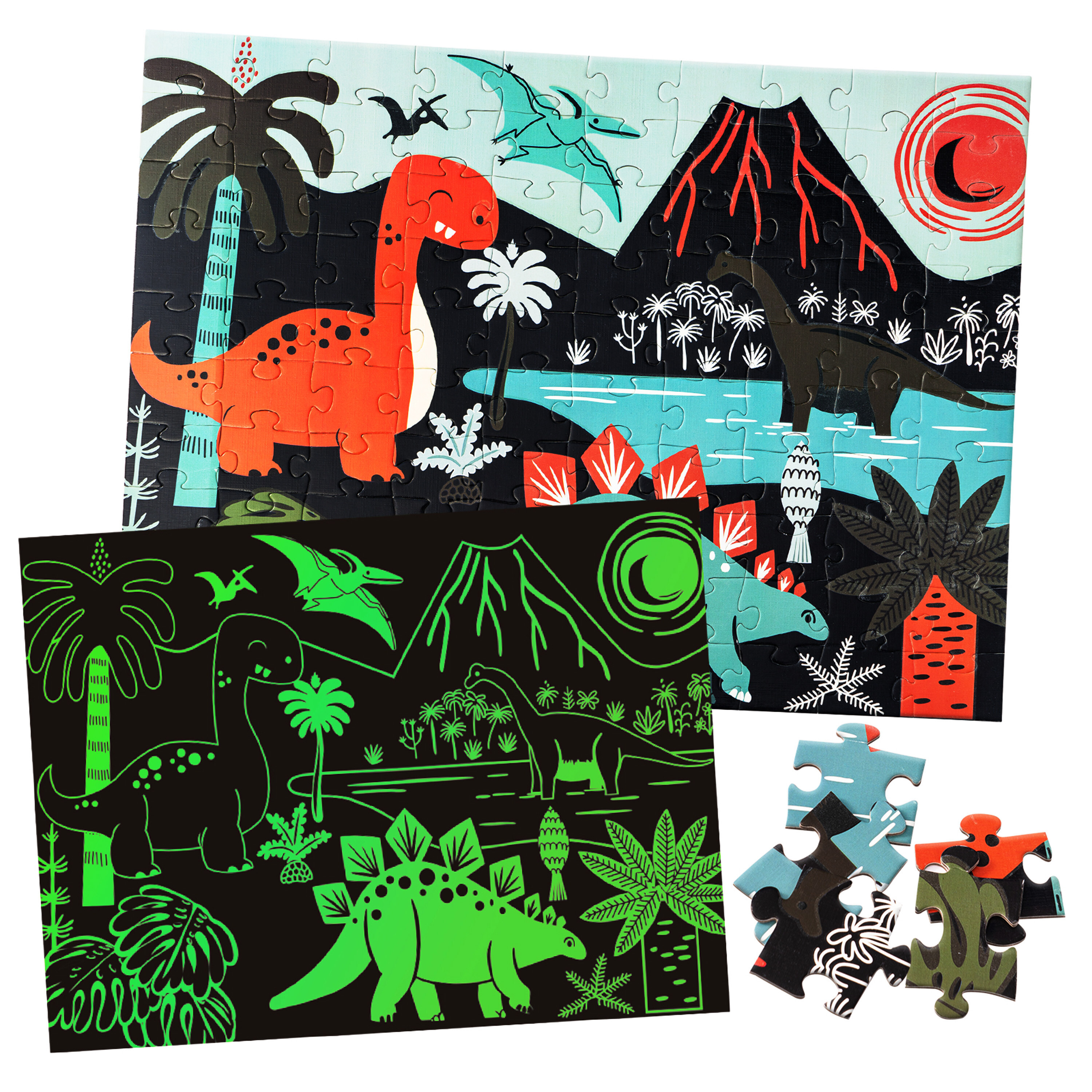 Navíc puzzle mají neonové prvky, ze kterých budou děti nadšené, po zhasnutí světla puzzle ožijí a jejich obrysy budou krásně svítit do tmy.