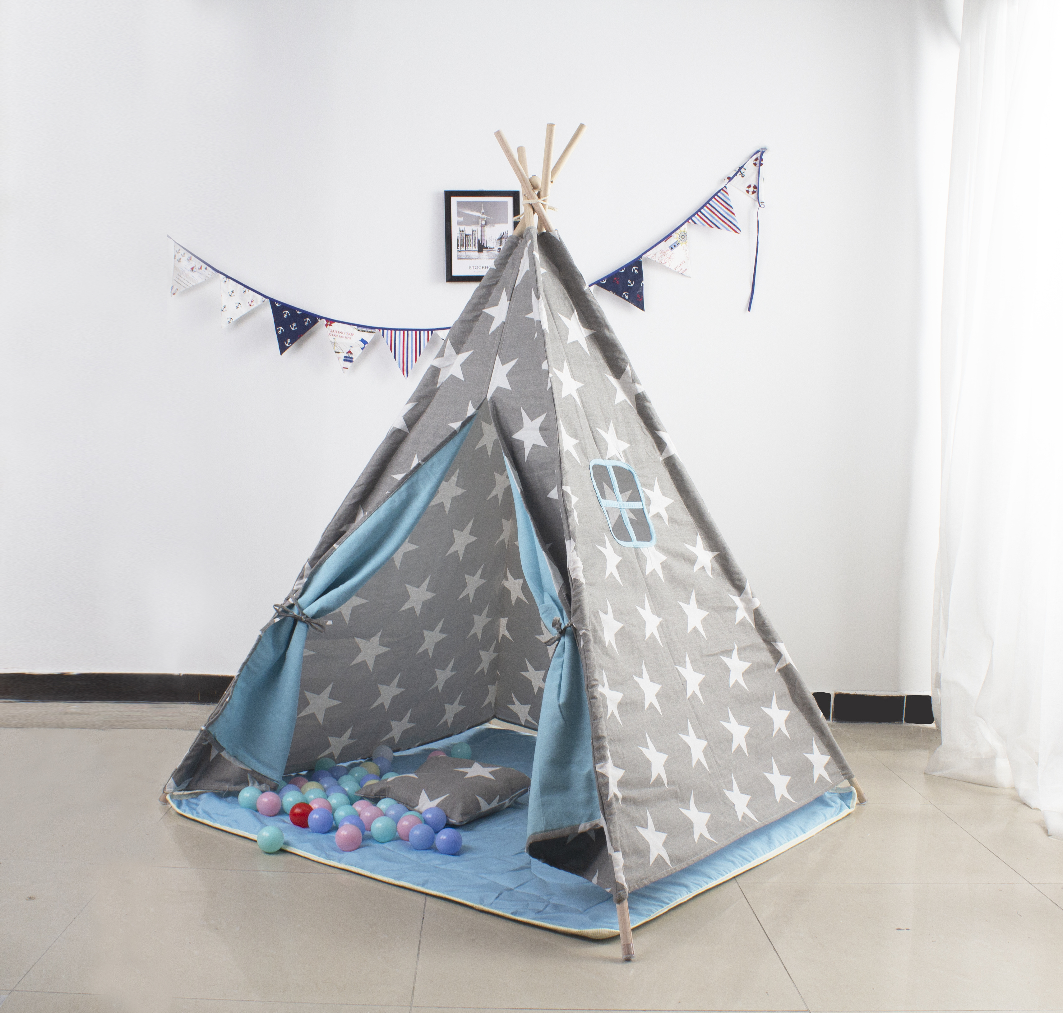 Aga4Kids Dětské Teepee Hvězdy Šedomodré