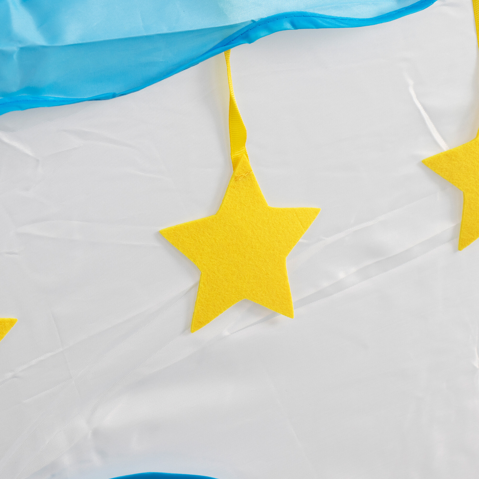 Stan má lehký, ale stabilní rám a je potažen jemnou polyesterovou látkou. Průhledné síťované stěny propouštějí dostatek světla a vzduchu, takže je uvnitř vždy příjemně. Vstupní otvor lze jednoduše odhrnout a vytvořit tak otevřený prostor pro hru.