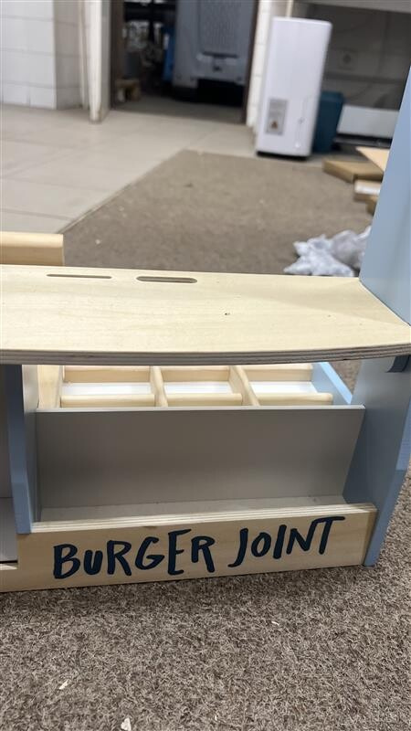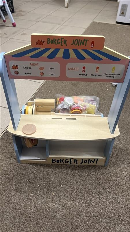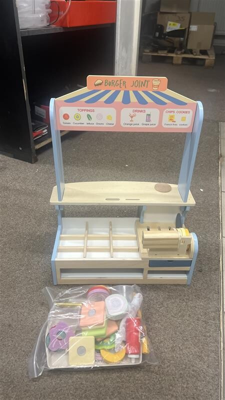 Dřevěný obchod byl použitý k reklamě, byl sešroubovaný, je zabalený v originálním obalu.